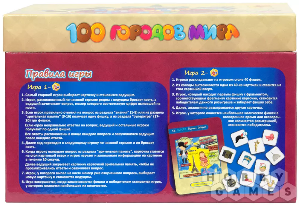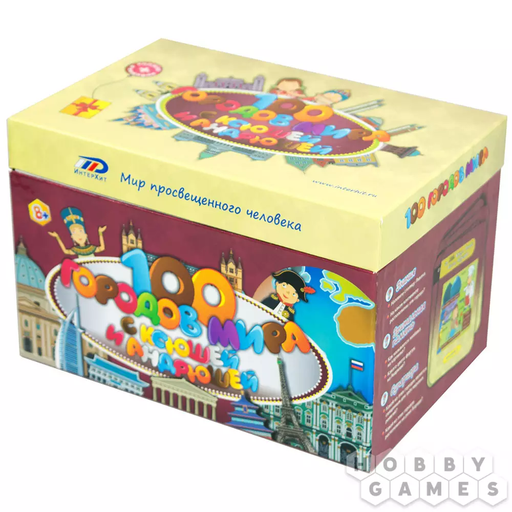 Настольная игра "100 городов мира с Ксюшей и Андрюшей" в лёгкой игровой форме познакомит ребят с различными городами, расскажет о многих исторических и географических фактах, а также разовьёт зрительную память, предложив запомнить и рассказать об увиденных картинках. В сундучке с игрой Вы также найдёте книжку, рассказывающую об Андрюше, Ксюше и их семье.