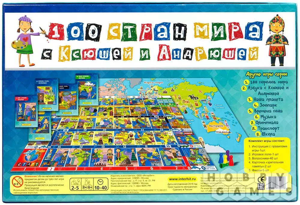 "100 стран мира с Ксюшей и Андрюшей" в лёгкой игровой форме познакомит ребят с различными уголками планеты, расскажет о многих исторических и географических фактах, обычаях и традициях народов разных стран, а также разовьёт зрительную память, предложив запомнить и рассказать об увиденных картинках. Любимая многими "ходилка" с элементами викторины предлагает два варианта игры.