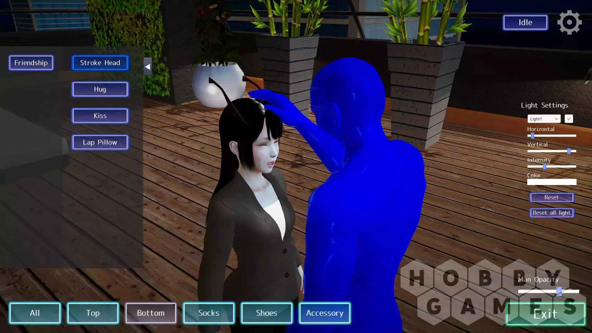 - Переведите своего персонажа в Situation Mode, чтобы нежно обнять его или заняться более рискованными дружескими делами! Теперь с регулируемой непрозрачностью мужчины!