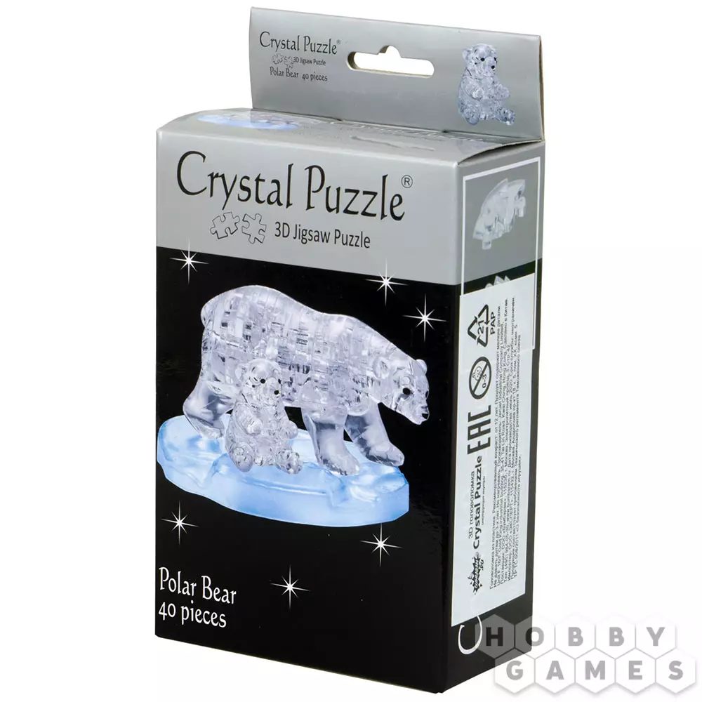 3D-пазл включает в себя 40 прозрачных деталей. Композиция состоит из медведицы и её детёныша, стоящих на голубой кристальной льдине. За счёт прозрачного материала объект пропускает через себя лучи, создавая эффект подсветки. Эта головоломка станет отличным подарком для детей и взрослых, ведь развивать пространственное мышление полезно во всех возрастах!