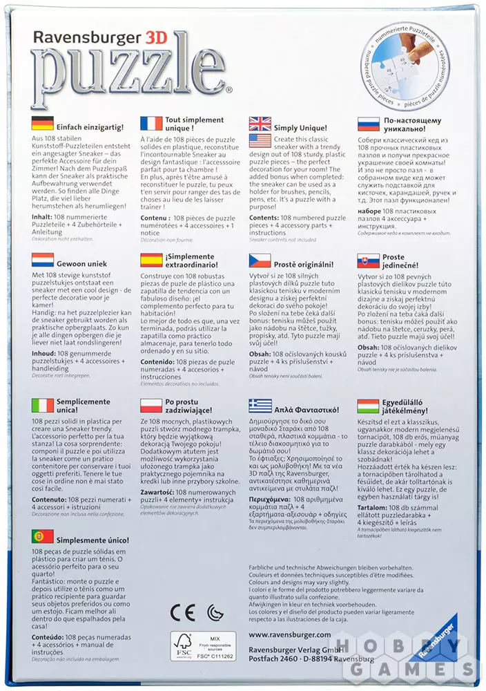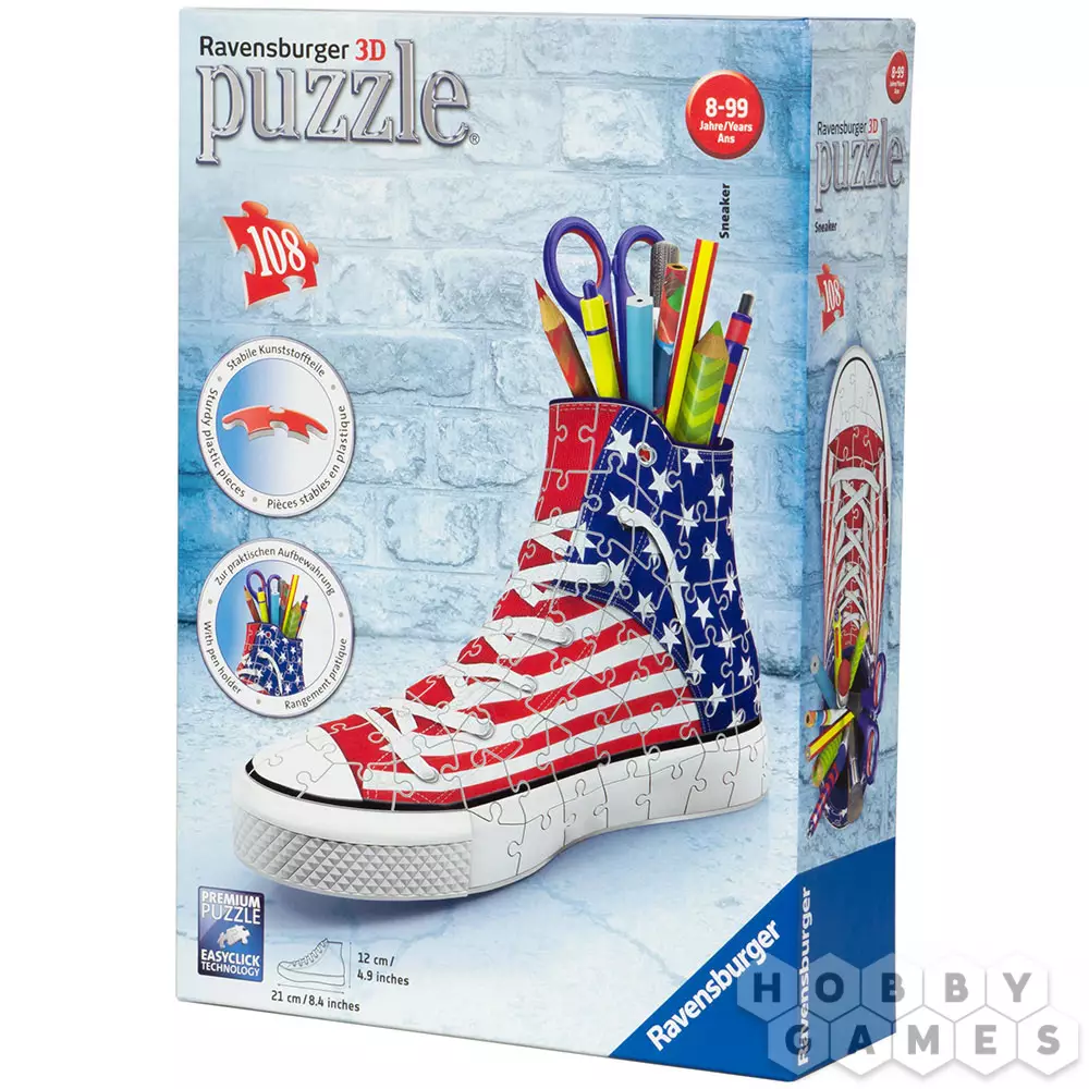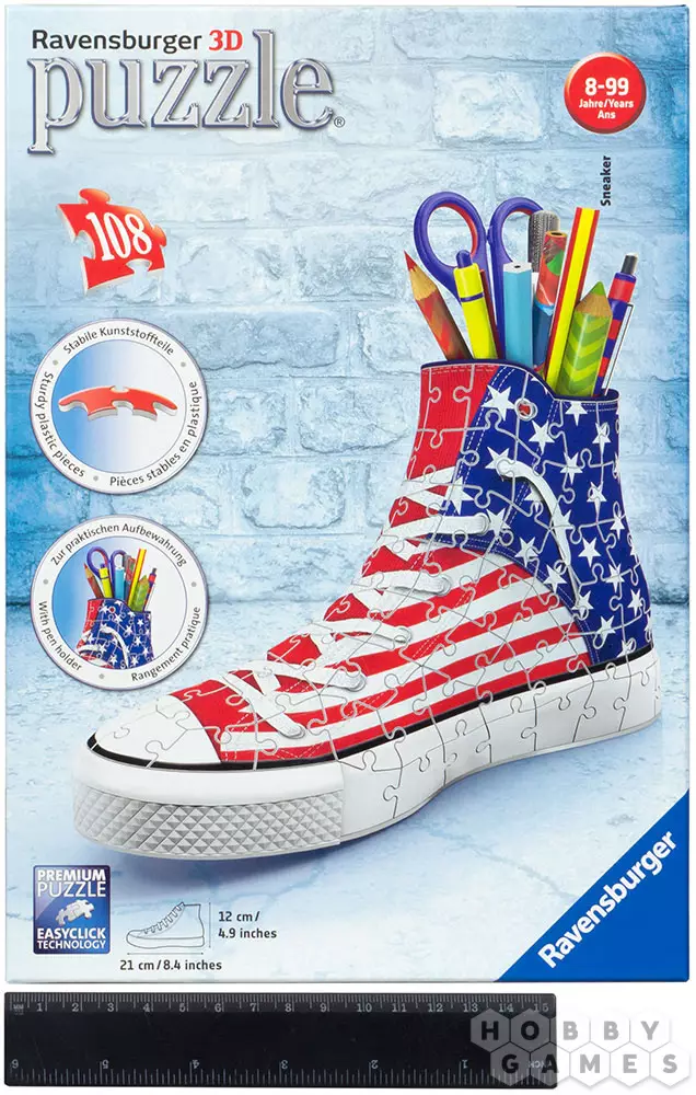 Америка дала миру не только фастфуд, голливудские фильмы и демократию для всех желающих и не очень. Каждый стильный подросток знает, что кеды это правильный выбор! Вопрос только один, "конверсы" или "вансы". У нас есть вариант получше – выберите 3D-пазл от Ravensburger. Его можно с удовольствием собрать, поставить на полку и использовать как стакан для канцелярских принадлежностей, а обычные кеды продаются сразу собранными и это не очень интересно.