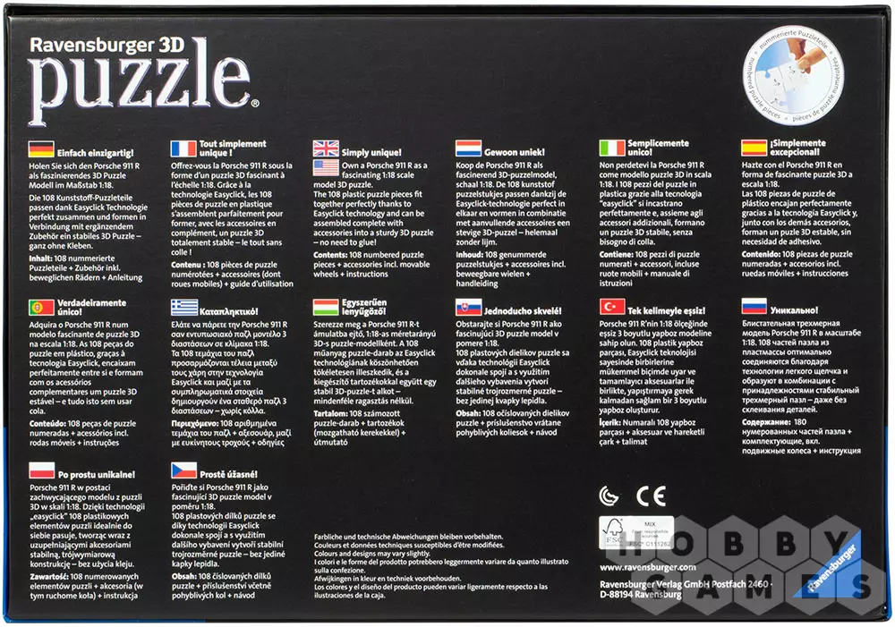 Эта поистине легендарная модель автомобиля стала лицом компании Porsche. Характерный внешний вид и оригинальные конструкторские решения, актуальные и по сей день, сделали эту машину одним из самых популярных спорткаров. Собрав 108 элементов воедино, вы получите объёмную модель "девятьсот одиннадцатого" с крутящимися колёсами! Если собрать две модели, можно устроить гонки (но быть осторожнее на поворотах!).