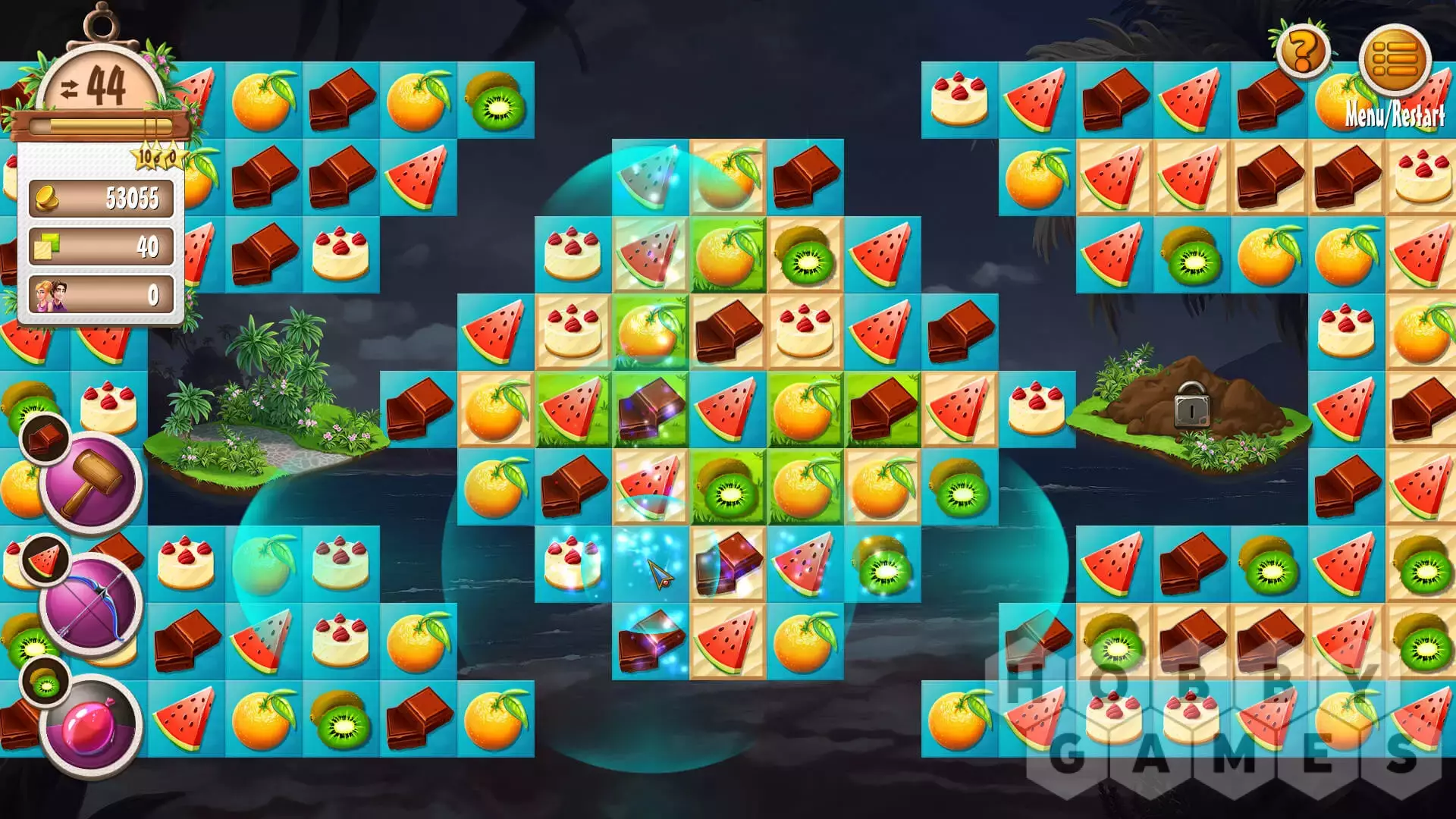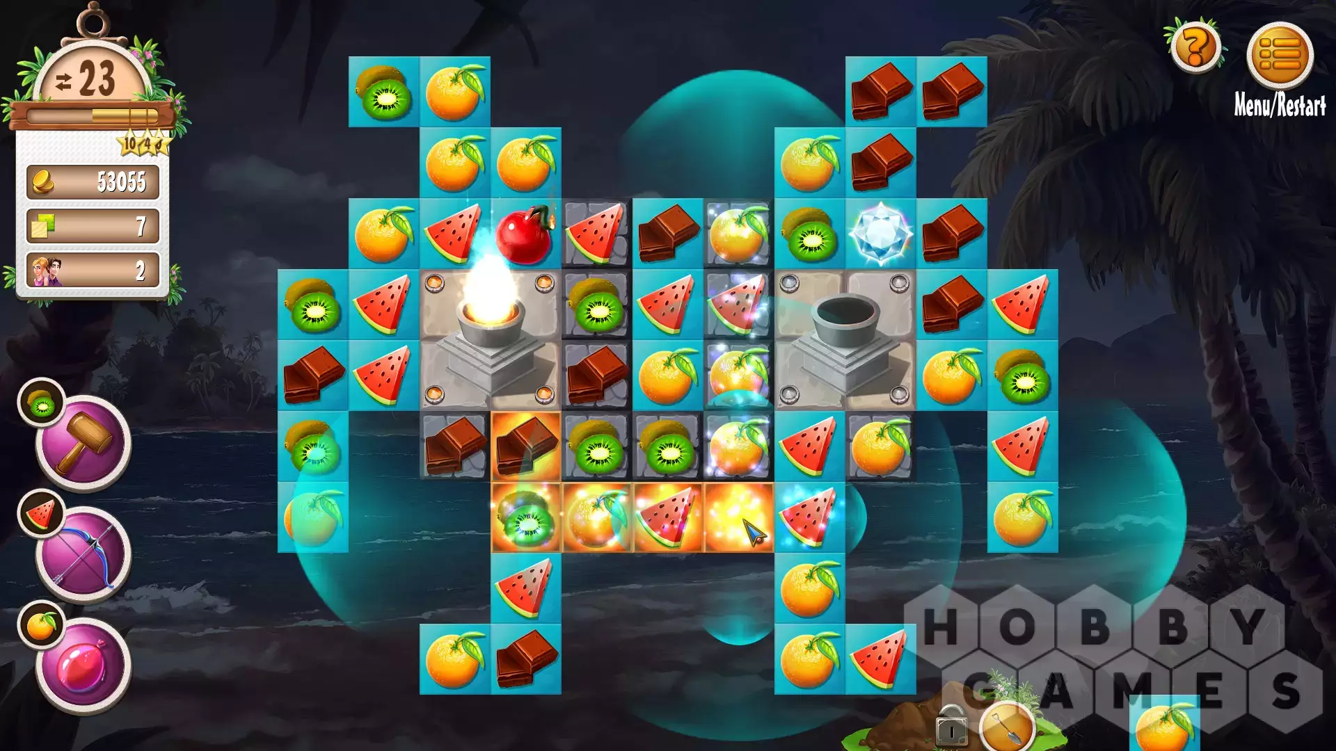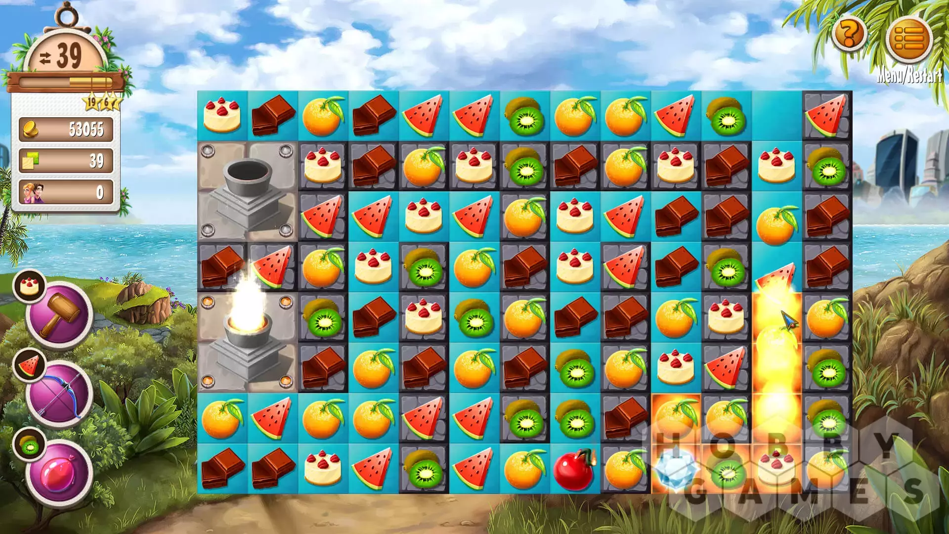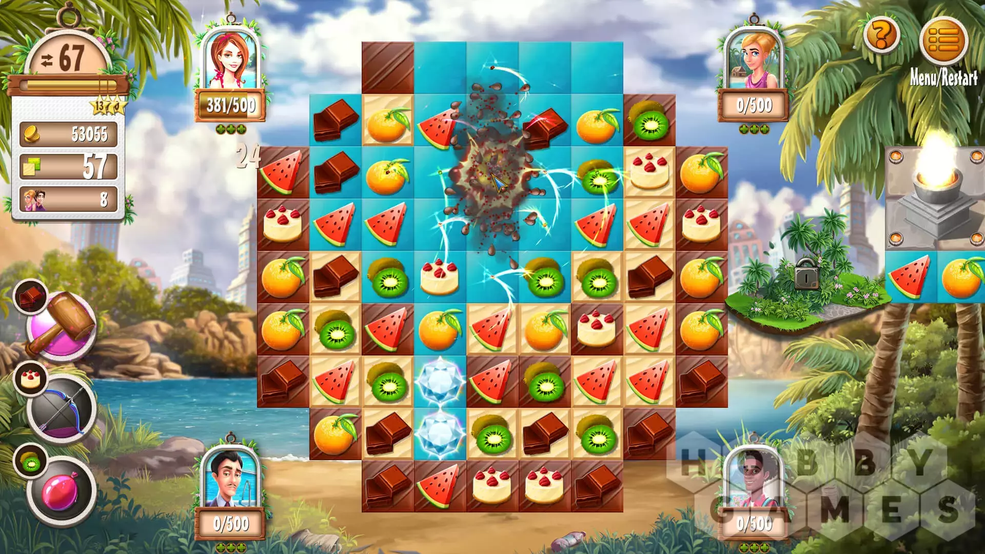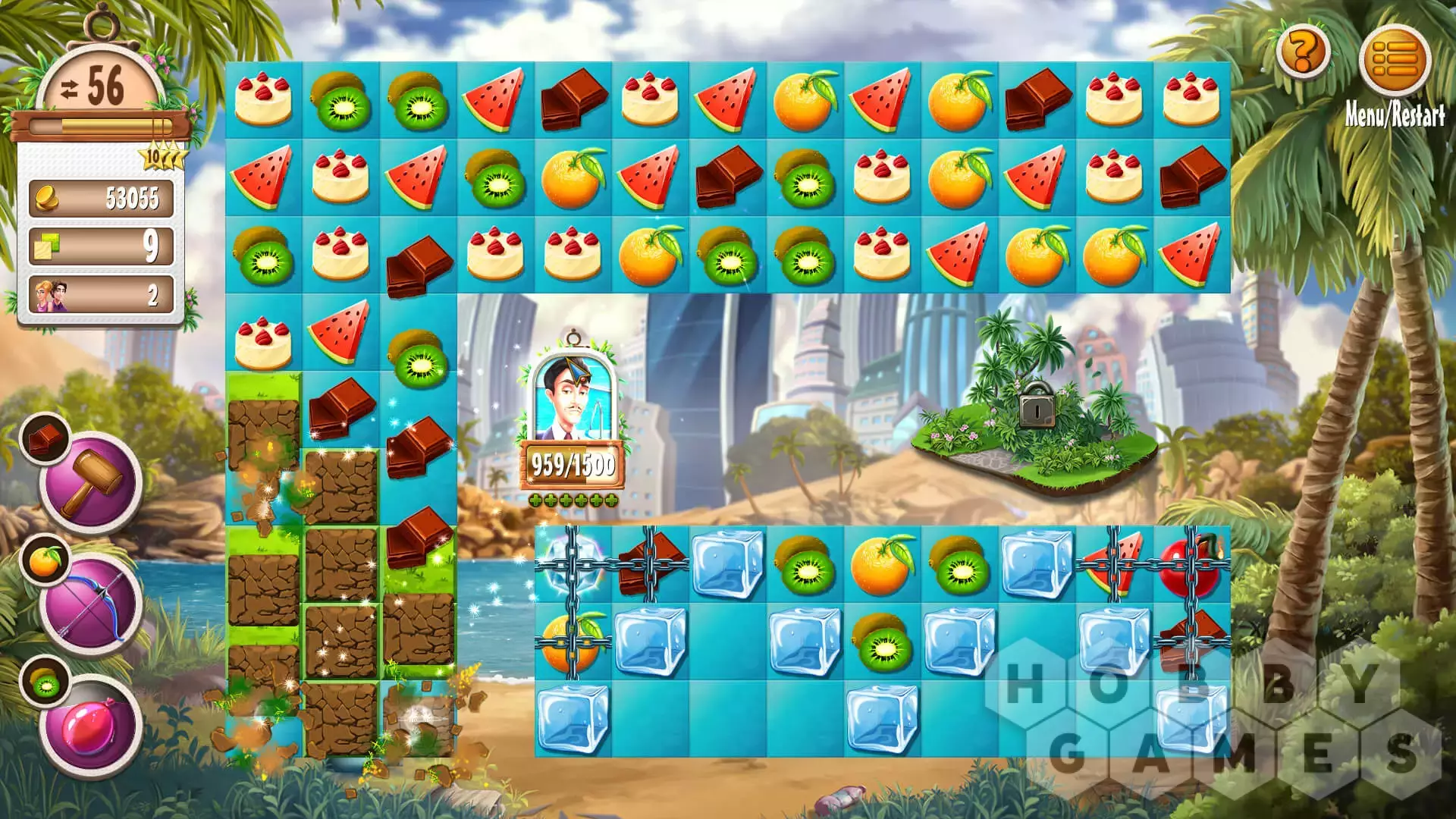 Вскоре вы поймете, что в Magic City все совсем по-другому: теперь вам придется преодолевать препятствия на связанных досках. В некоторых случаях вам понадобятся факелы, чтобы увидеть препятствия. Здания также влияют на ваш игровой процесс. Как только в ваш отель прибудут первые гости, вам нужно будет поддерживать их уровень удовлетворенности как можно выше.