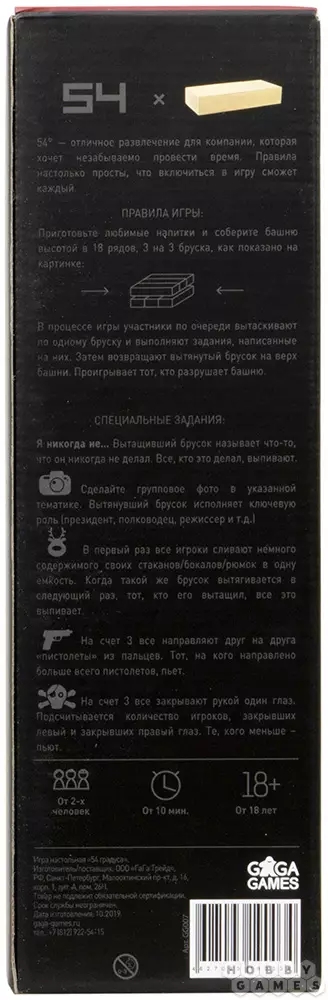 Деревянная башня "54 градуса" – весёлое времяпрепровождение для шумной компании. Правила игры настолько просты, что включиться в процесс в любой момент никому не составит труда.