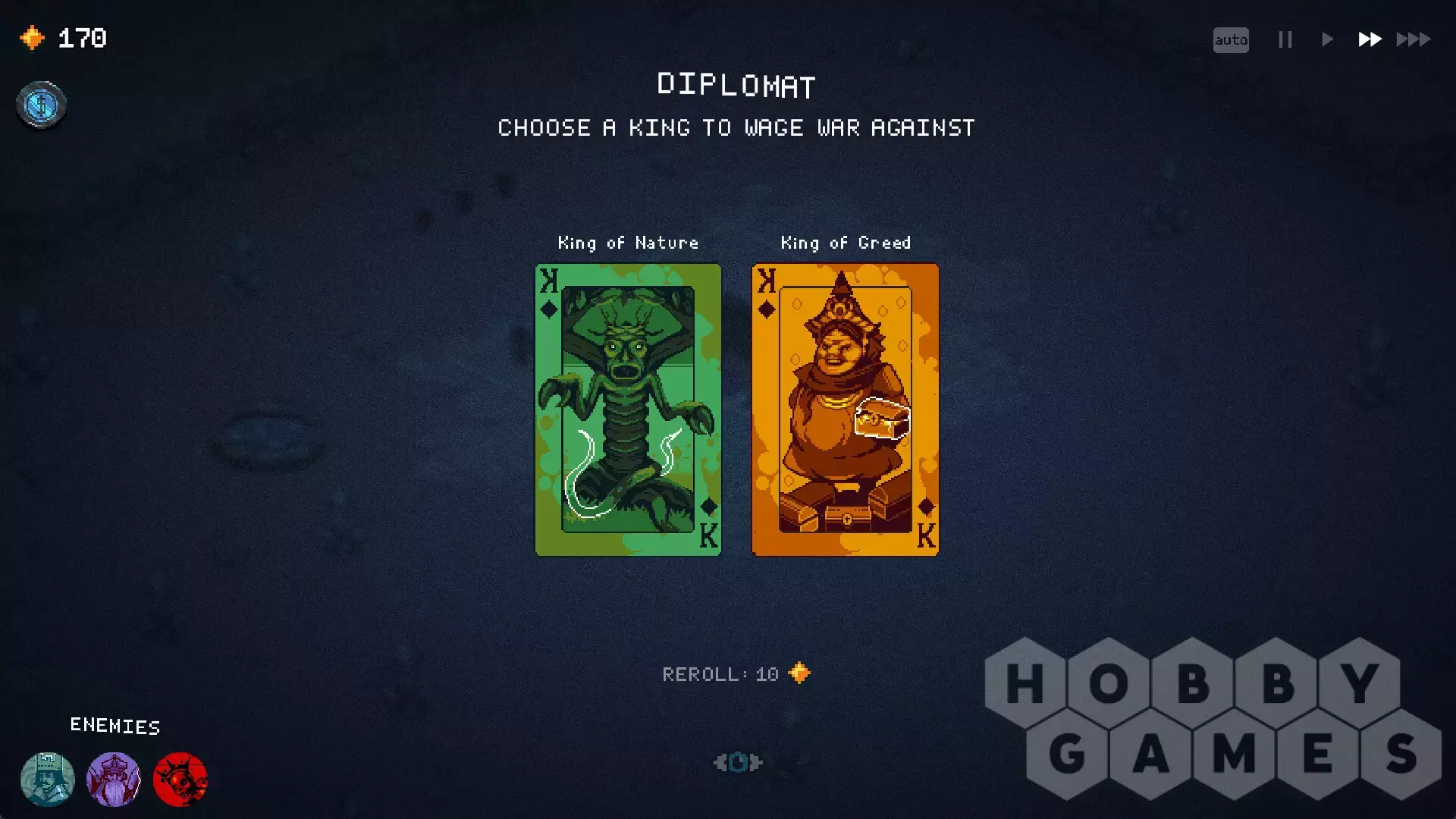 Комбинируйте карты как угодно, пробуйте безумные стратегии и наблюдайте, как огромные армии сражаются за ваше королевство. Выживайте как можно дольше против всё более сильных врагов или сломайте игру, заставив всех претендентов пасть перед вами!