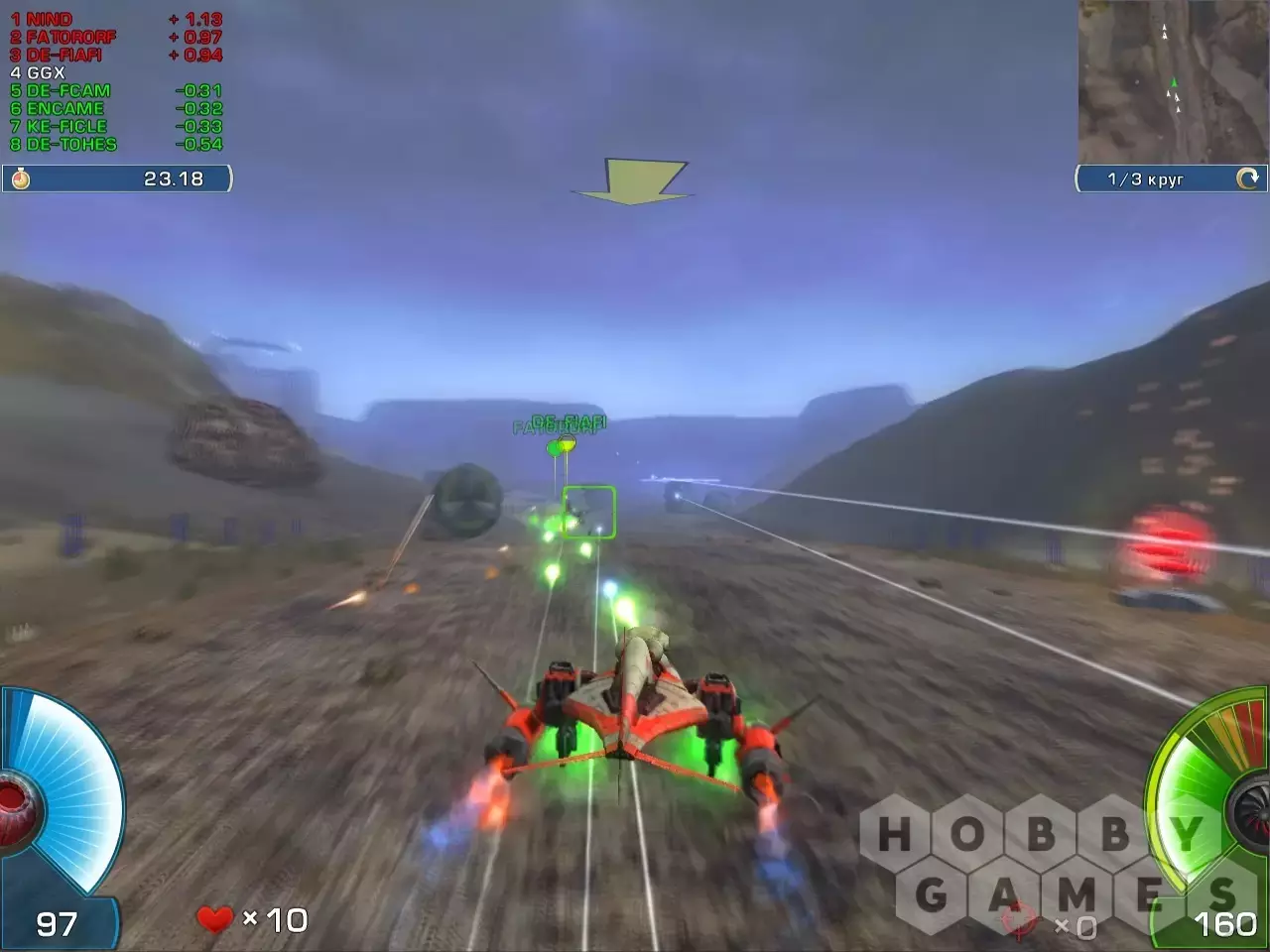Если ты не боишься ураганных скоростей, коварных ловушек и плазменных зарядов, рвущих обшивку твоего гоночного глайдера, то эта игра для тебя. Теперь не надо копить на новый глайдер и думать о том, где взять энергию на новую, более мощную пушку. Сеть предложит тебе любую машину и оружие - только побеждай!