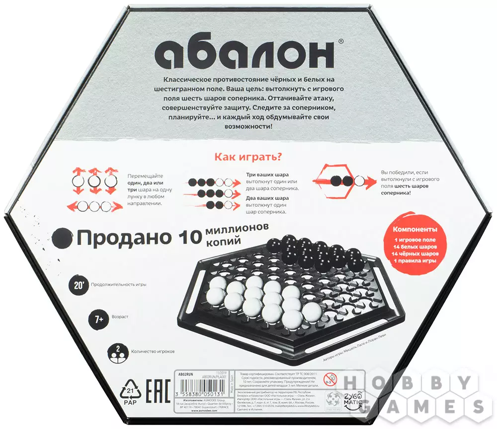 "Абалон" – это абстрактная логическая настольная игра родом из Франции, также известная под названием "Сумито". Правила игры очень простые и понятные, однако множество возможных комбинаций ходов и напряженное противостояние умов сделало игру очень популярной – по ней проводят всемирные чемпионаты, а правила дорабатываются любителями.