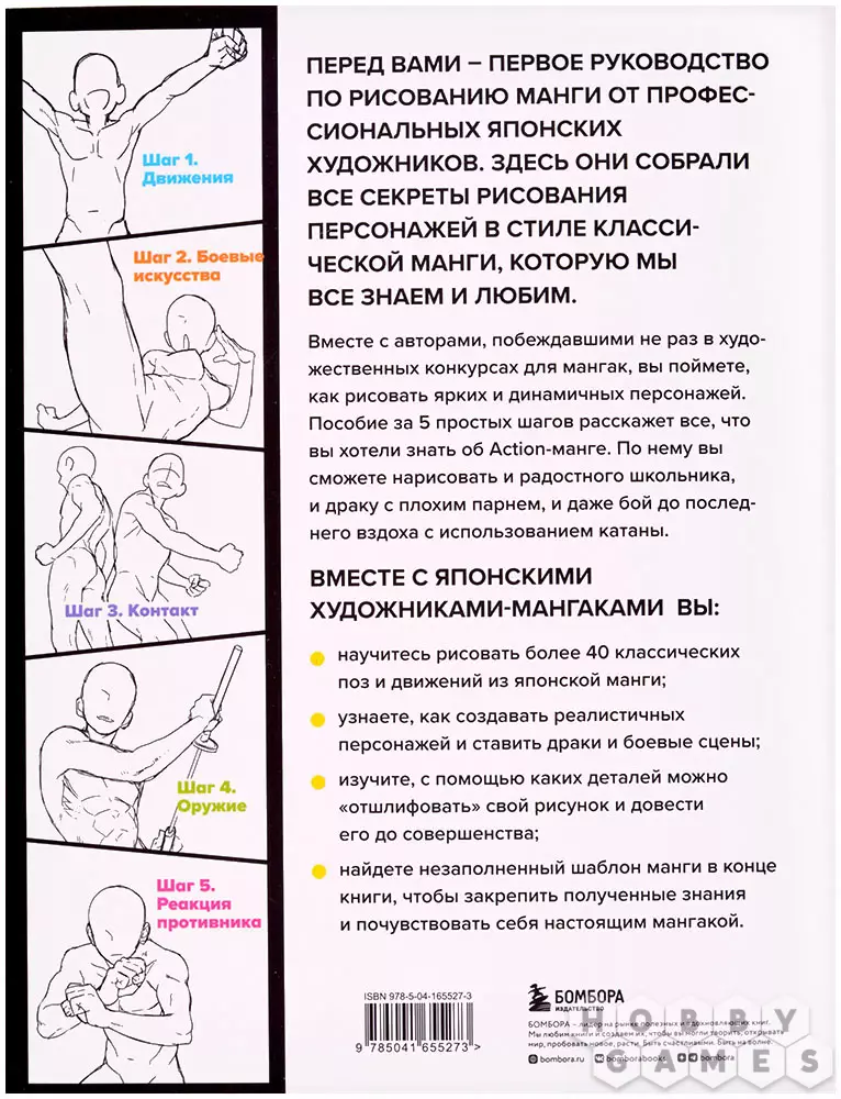 Вместе с авторами, не раз побеждавшими в художественных конкурсах для мангак, вы поймёте, как рисовать ярких и динамичных персонажей. Данное пособие за пять простых шагов расскажет всё то, что вы хотели знать об Action-манге. Через некоторое время вы сможете нарисовать и радостного школьника, и драку с плохим парнем, и даже бой до последнего вздоха с использованием катаны.