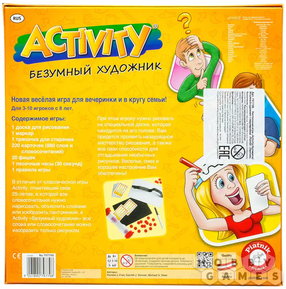 В привычной версии "Активити" мы рисовали, показывали жестами, использовали различные звуки... Встречайте креативную и творческую игру Activity "Безумный художник", в которой участникам придётся изобразить загадываемые слова на дощечке, которая надевается прямо на лоб игрока! Такой подход к игре обеспечивает великолепное настроение всей компании, а также несомненно разовьёт художественные навыки ведущего и фантазию окружающих. Узнайте, кто из вас самый безумный художник!