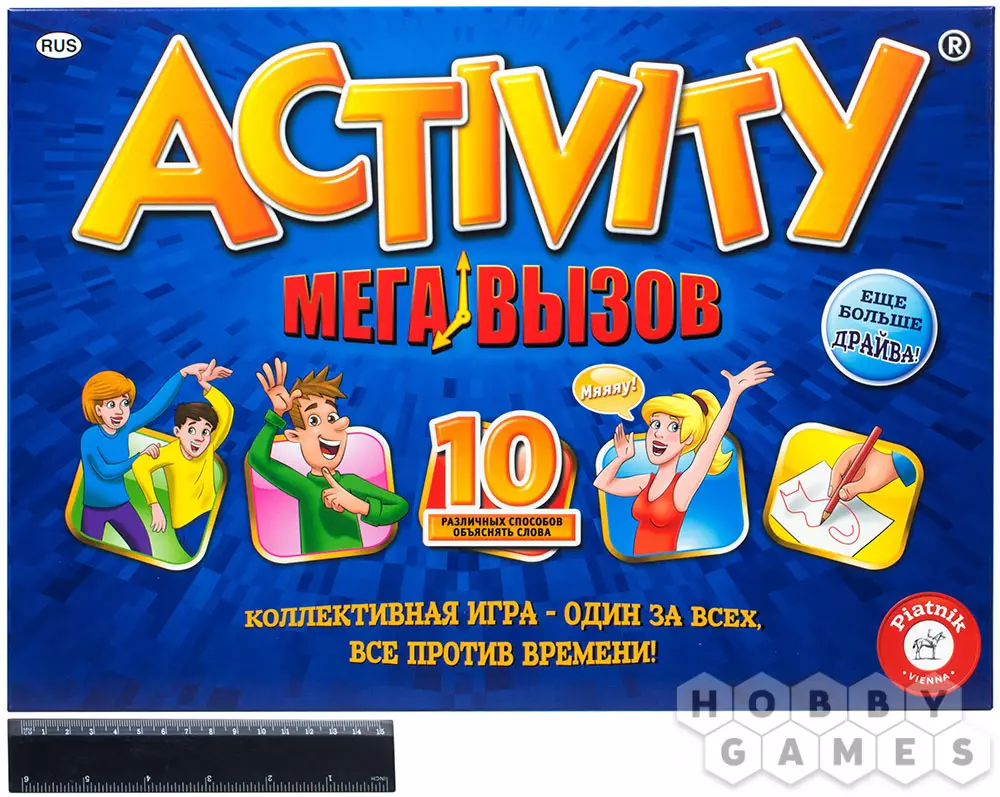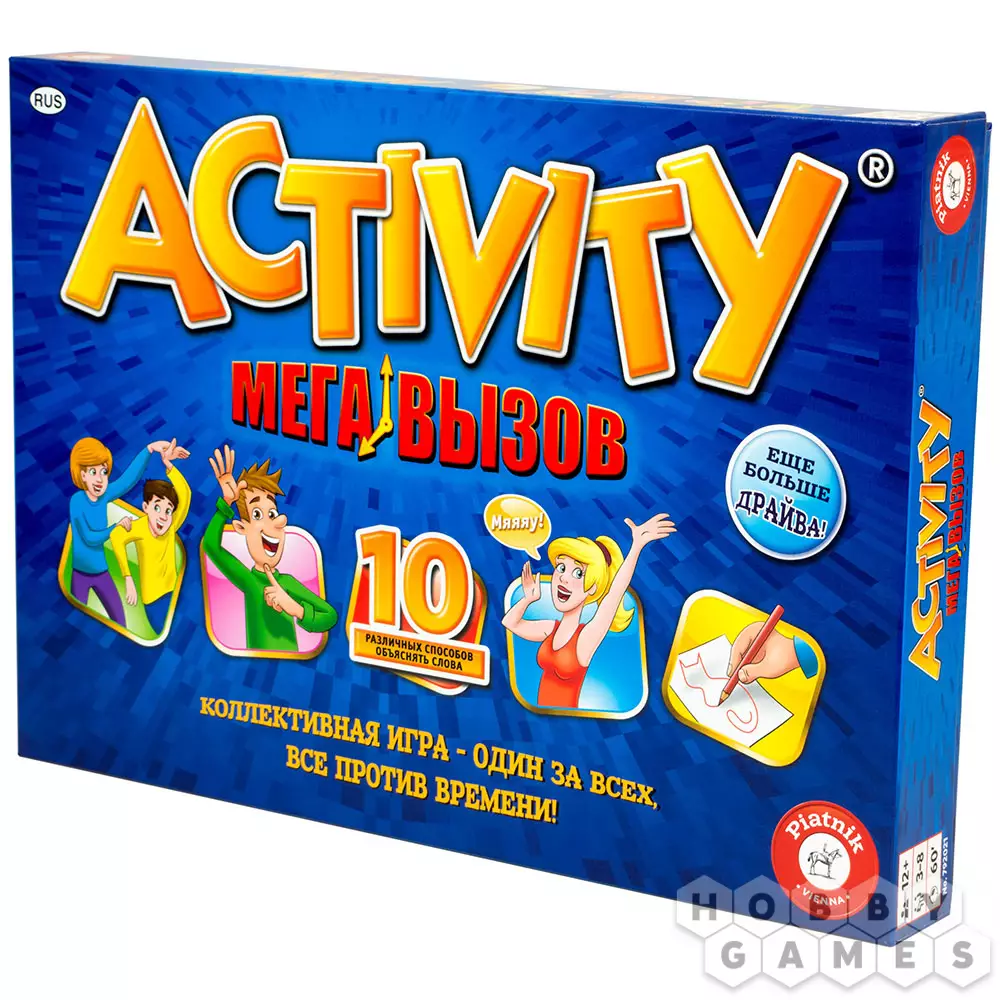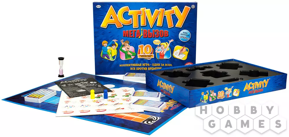 Серия настольных игр Activity существует уже более 25 лет и "Activity Мега вызов" – одна из последних версий этой популярной игры, основной особенностью которой является то, что игроки или победят вместе, или проиграют так же, все вместе.