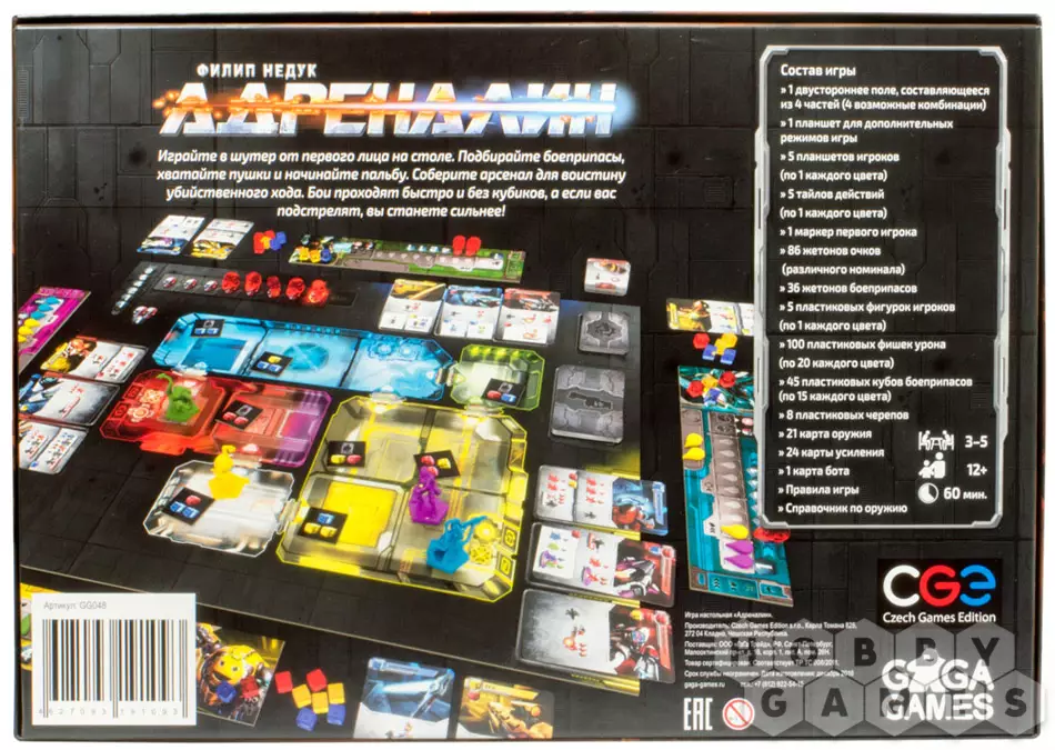 Уникальная и очень динамичная настольная игра "Адреналин" стала настоящим самородком на выставке Эссен в 2016 году. Это единственный представитель жанра настольных шутеров, отсылающих тех, кто постарше, к старым добрым DooM, Quake и Unreal, а тех, кто помоложе, к новым аренным шутерам вроде Overwatch. Более того, эта игра прекрасно передаёт весь драйв от компьютерных стрелялок!