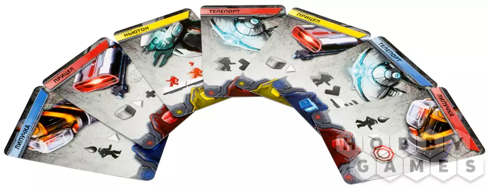 Пальнуть – действие, которое приносит больше всего веселья! Оружие сильно отличается друг от друга и для этого действия нужно, чтобы были соблюдены условия. Сначала вы выкладываете карту оружия и выбираете цели для стрельбы. Оружие считается разряженным, а перезарядить его можно будет в конце хода. Помимо базового эффекта, оружие может обладать режима стрельбы и другими особенностями, за которые нужно будет доплатить кубами боеприпасов или картами.