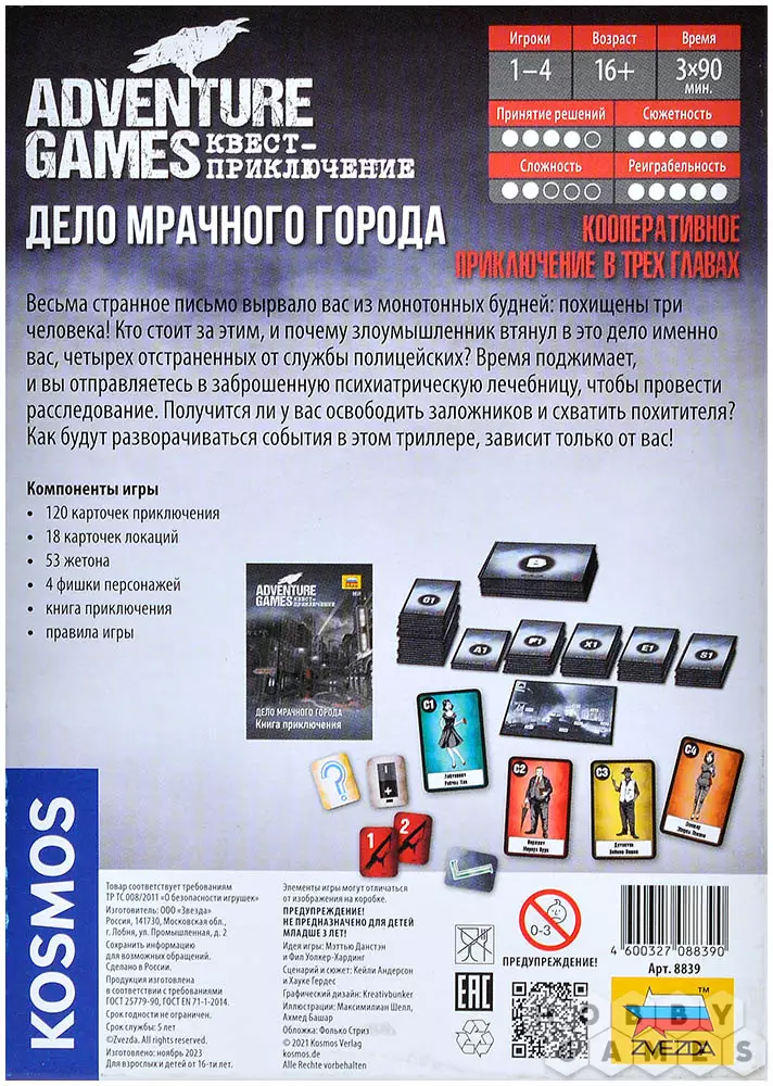 "Дело мрачного города" – это кооперативная игра, в которой каждая из трёх глав – это новый виток в паутине обмана и предательства. Как в классических компьютерных квестах, вы будете блуждать по тёмным улицам, искать улики, которые не хотят быть найденными, и разгадывать загадки. Колоритные персонажи со своими тайнами будут то помогать, то мешать вам. Что откроется вам в эту дождливую ночь, когда секреты города спрятаны за пеленой тумана? Сможете ли вы докопаться до истины, или станете ещё одной жертвой этого мрачного места?