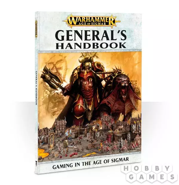 Внутри этой книги вы найдете множество дополнительных правил и способов играть в Age of Sigmar! Очковая стоимость миниатюр, нарративные кампании и турнирные правила, новые боевые планы, советы по проведению сражений и многое другое ждет вас на страницах General's Handbook!