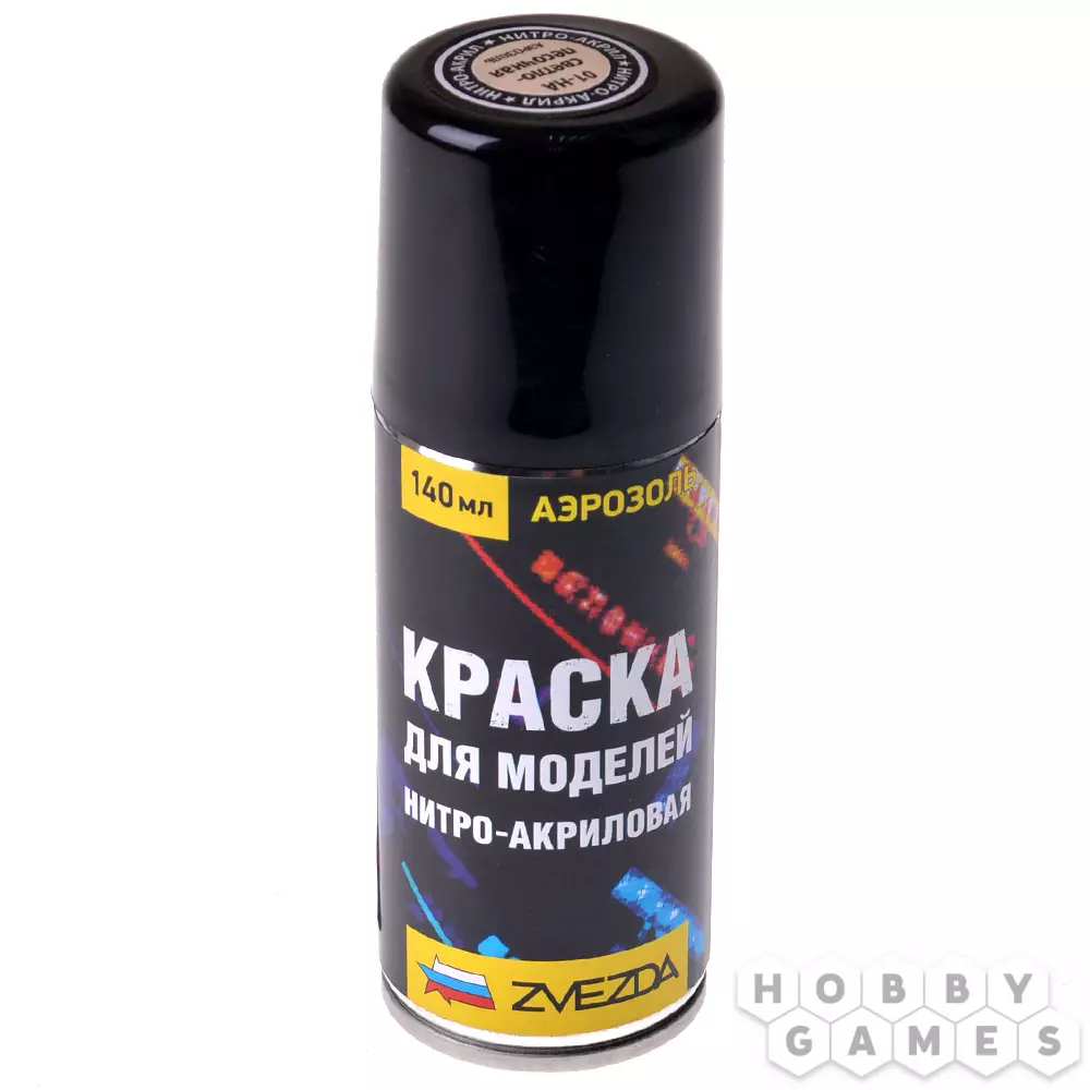 Аэрозольная нитро-акриловая краска от компании Zvezda предназначена для покраски пластиков, которые используются при изготовлении моделей, но также может применяться в различных декоративных и дизайнерских работах. У этой краски очень высокая укрывистость, а ещё она обладает хорошей адгезией не только к пластику, но и другим материалам, например, бетону, дереву или металлу.