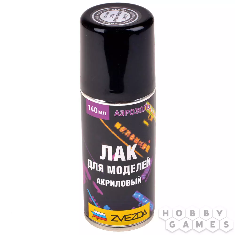 Аэрозольный акриловый лак от компании Zvezda предназначен для работы с пластиком, который используются при изготовлении моделей, но также может применяться в различных декоративных и дизайнерских работах. У этого лака очень хорошая адгезия не только к пластику, но и другим материалам, например, бетону, дереву или металлу, а также он обладает высокой стойкостью атмосферным воздействиям и механическим повреждениям.