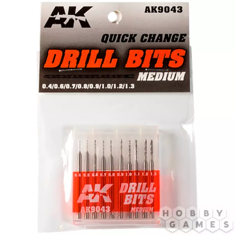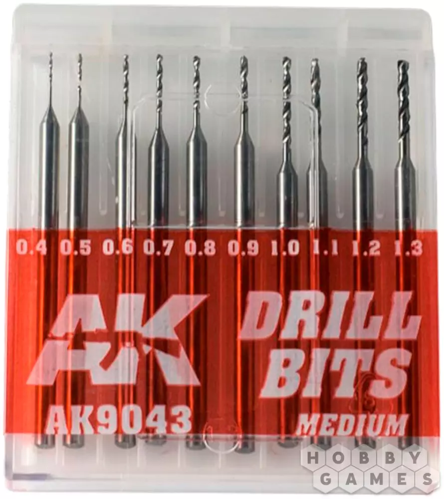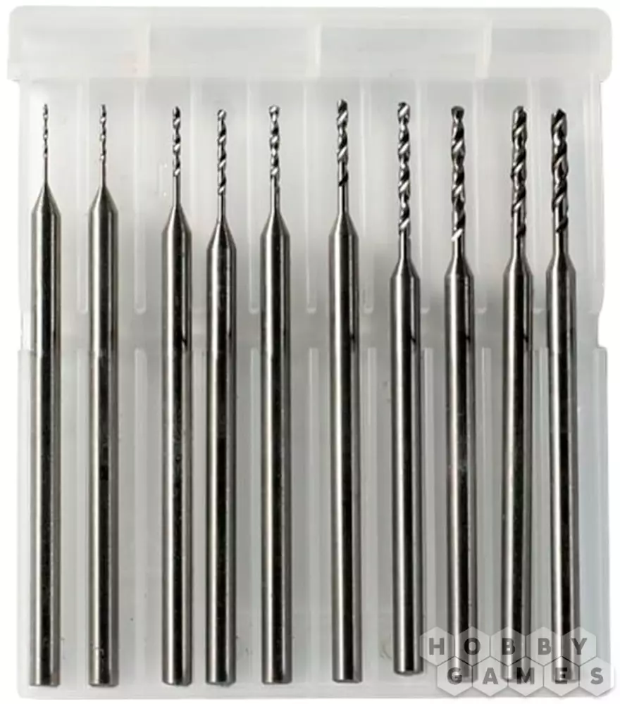 Набор из десяти твёрдосплавных бит диаметром от 0,4 мм до 1,3 мм. Они имеют стержень одинаковой длины, что облегчает их использование в держателях для свёрл любого типа. Хранятся биты в прозрачном футляре из твёрдого пластика.