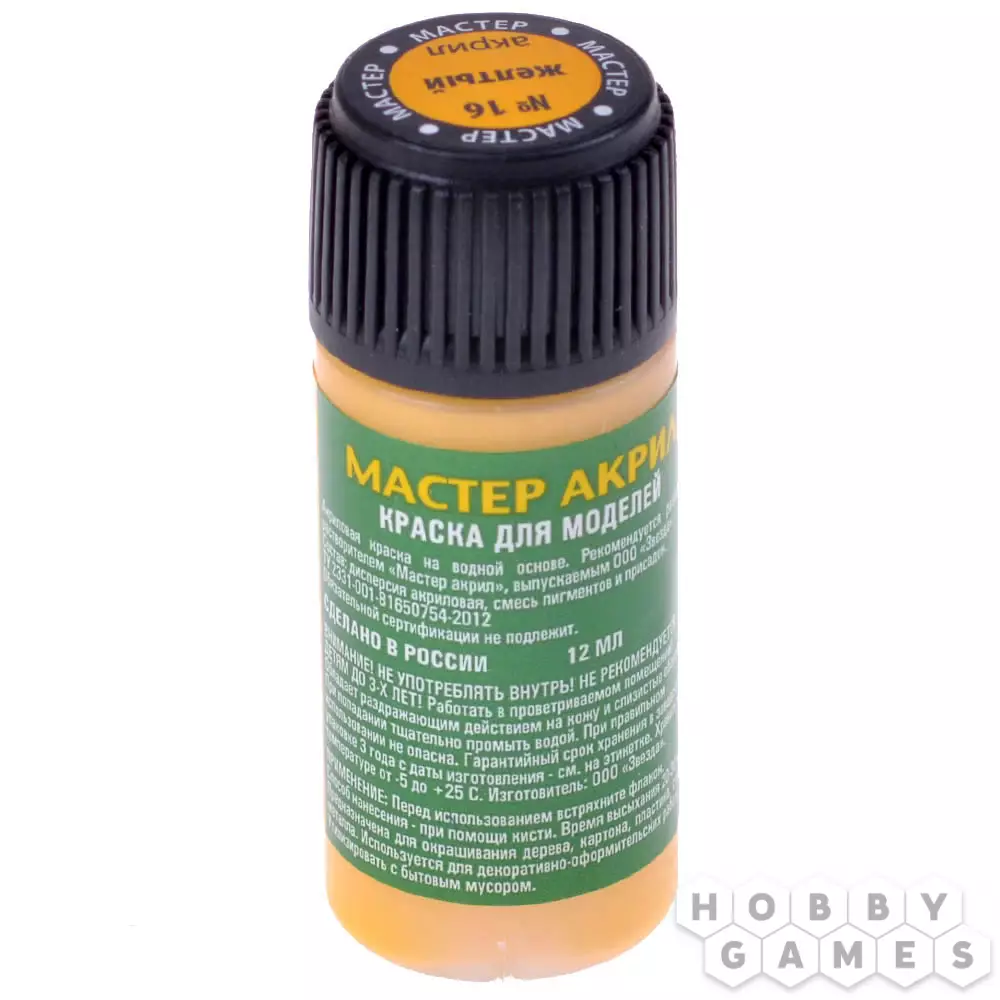 Краска Zvezda "Мастер акрил": жёлтый (16-МАКР)
