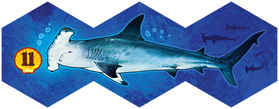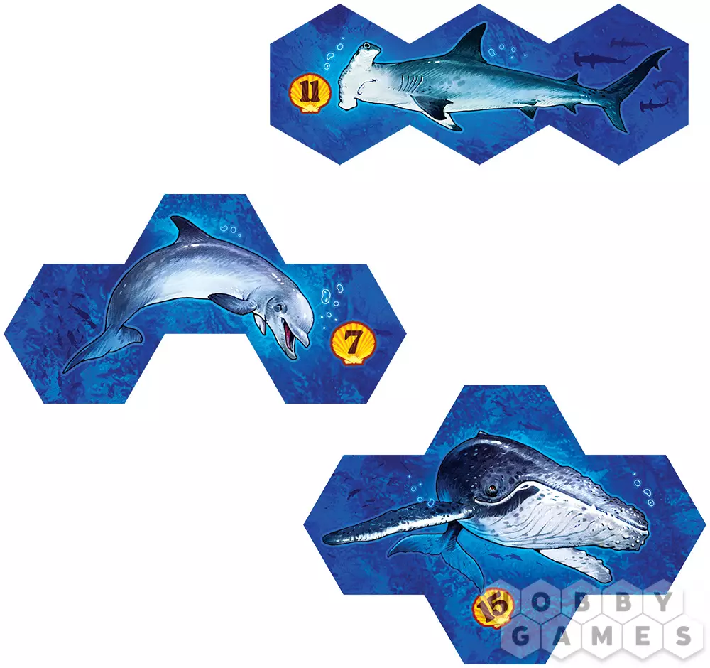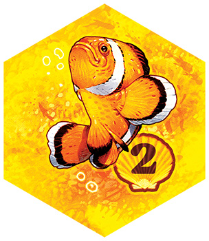 Обеспечить биоразнообразие – после размещения маленьких животных вы можете привлечь большое морское животное. Для этого разместите его жетон поверх нескольких маленьких животных, соблюдая ключевое правило: все накрытые маленькие животные должны быть разными видами. Большое животное должно полностью покрывать выбранных маленьких обитателей