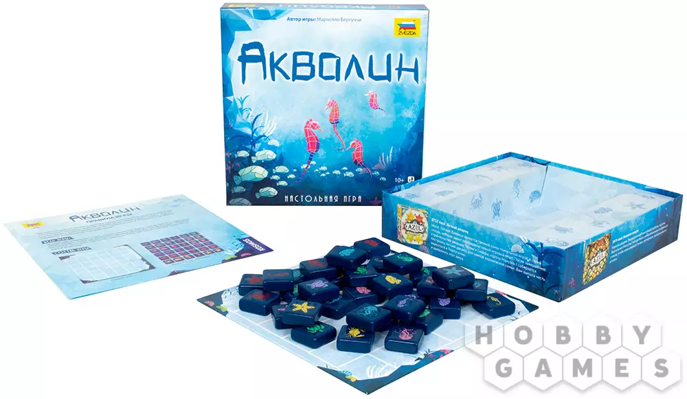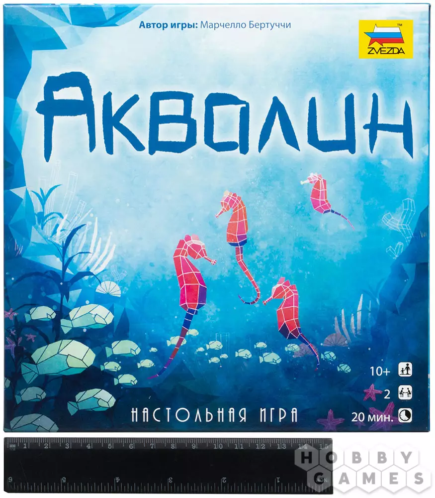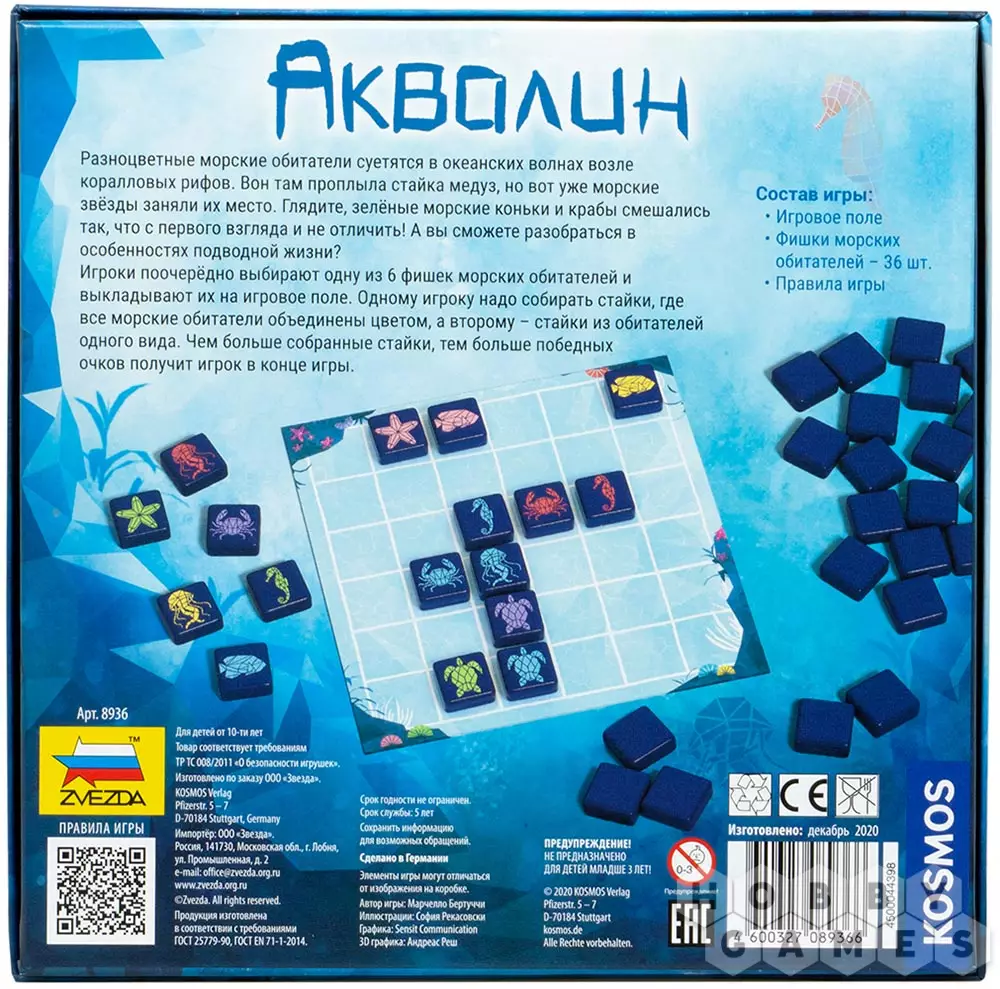 "Аквалин" – именно такая игра, рассчитанная на двоих игроков. Невероятно простые правила, качественные компоненты и приятный дизайн помогут вам приятно провести время, а игровой процесс временами заставляет подумать. Суть игры в поочерёдном выкладывании на игровое поле разноцветных фишек с морскими обитателями так, чтобы из них получались группы одного цвета или с одинаковыми рисунками, причём один игрок получает очки за стайки, собранные по цвету, а второй – за те, что собраны по виду.