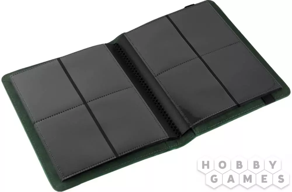 Защитите ваши карты от внешних воздействий! В этом альбоме зелёного цвета 20 встроенных листов, по 4 кармашка с боковой загрузкой карт на каждом. Всего в альбоме помещается 80 карт при одинарной загрузке или же 160 карт при двойной. Листы сделаны из прочного материала, не царапающего карты. А твёрдая обложка защитит как ваши карты, так и сам альбом.