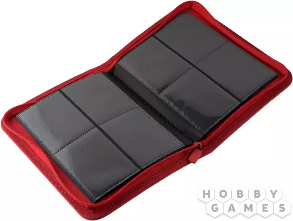 Защитите ваши карты от внешних воздействий! В этом альбоме красного цвета 20 встроенных листов, по 4 кармашка с боковой загрузкой карт на каждом. Всего в альбоме помещается 80 карт при одинарной загрузке или же 160 карт при двойной. Листы сделаны из прочного материала, не царапающего карты. Для большей надежности альбом застёгивается на молнию. А твёрдая обложка защитит как ваши карты, так и сам альбом.