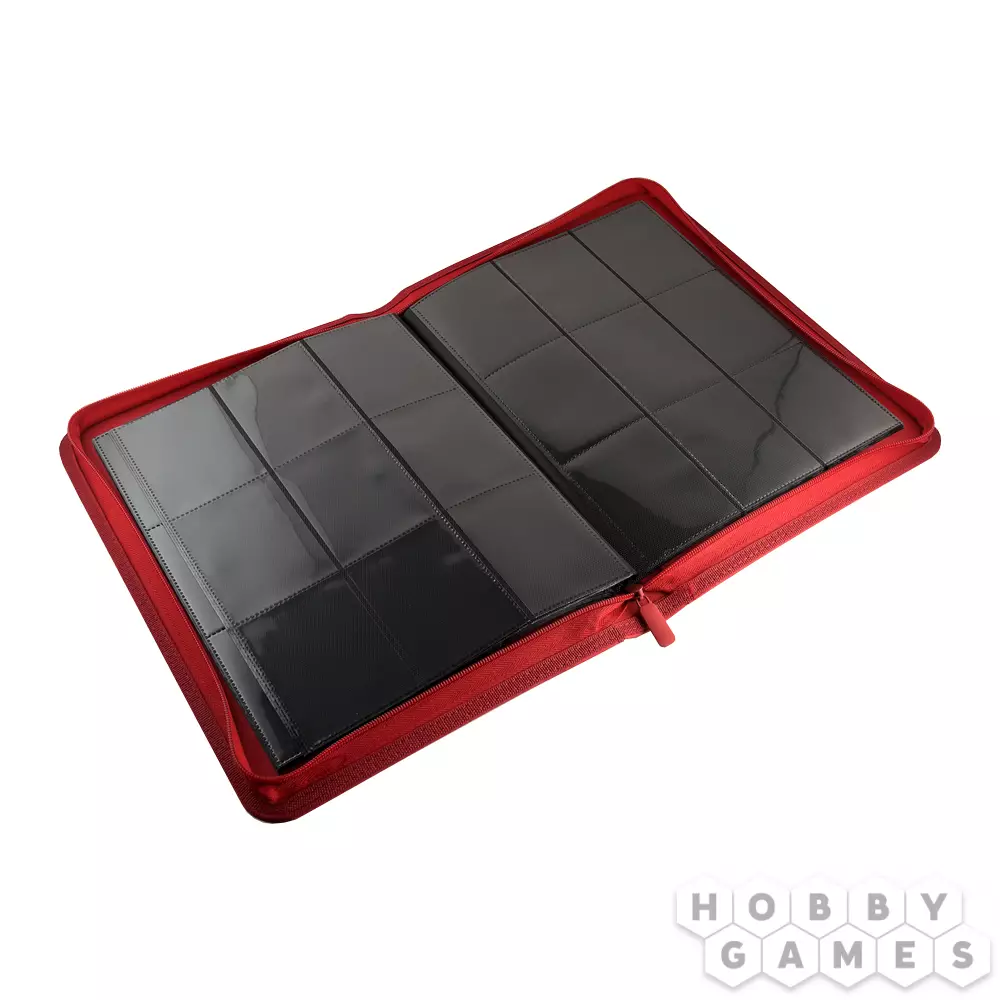 Защитите ваши карты от внешних воздействий! В этом альбоме красного цвета 20 встроенных листов, по 9 кармашков с боковой загрузкой карт на каждом. Всего в альбоме помещается 80 карт при одинарной загрузке или же 160 карт при двойной. Листы сделаны из прочного материала, не царапающего карты. Для большей надежности альбом застёгивается на молнию. А твёрдая обложка защитит как ваши карты, так и сам альбом.