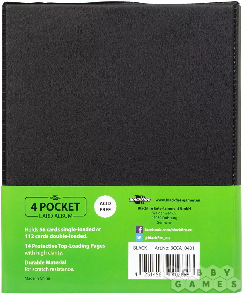 Защитите ваши карты от внешних воздействий! В этом альбоме чёрного цвета 14 встроенных листов, по 4 кармашка с верхней загрузкой карт на каждом. Всего в альбоме помещается 56 карт при одинарной загрузке или же 112 карт при двойной. Листы сделаны из прочного материала, не царапающего карты. А твёрдая обложка защитит как Ваши карты, так и сам альбом.