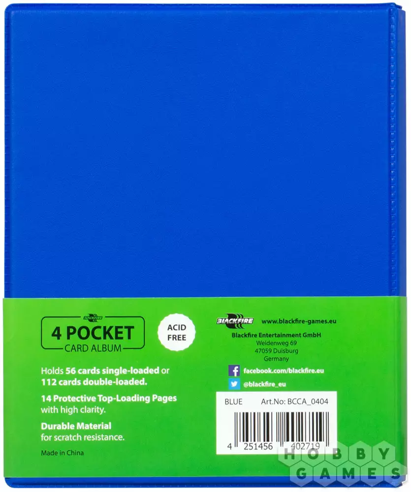 Защитите ваши карты от внешних воздействий! В этом альбоме 14 встроенных листов, по 4 кармашка с верхней загрузкой карт на каждом. Всего в альбоме помещается 56 карт при одинарной загрузке или же 112 карт при двойной. Листы сделаны из прочного материала, не царапающего карты. А твёрдая обложка защитит как Ваши карты, так и сам альбом.