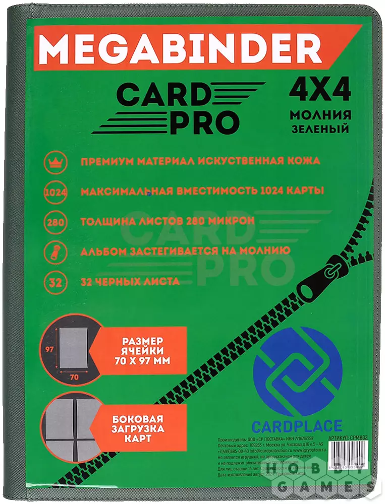 Альбом Card-Pro MEGABINDER (с листами по 4x4 кармашка): Зелёный