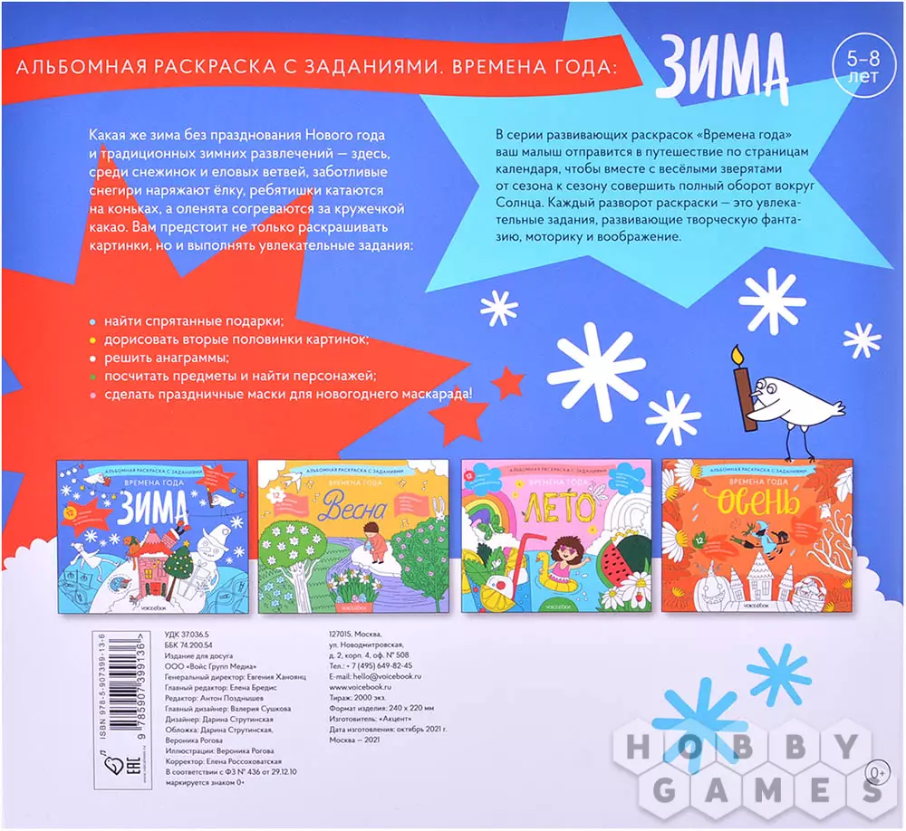 Альбомная раскраска с заданиями "Времена года: Зима"