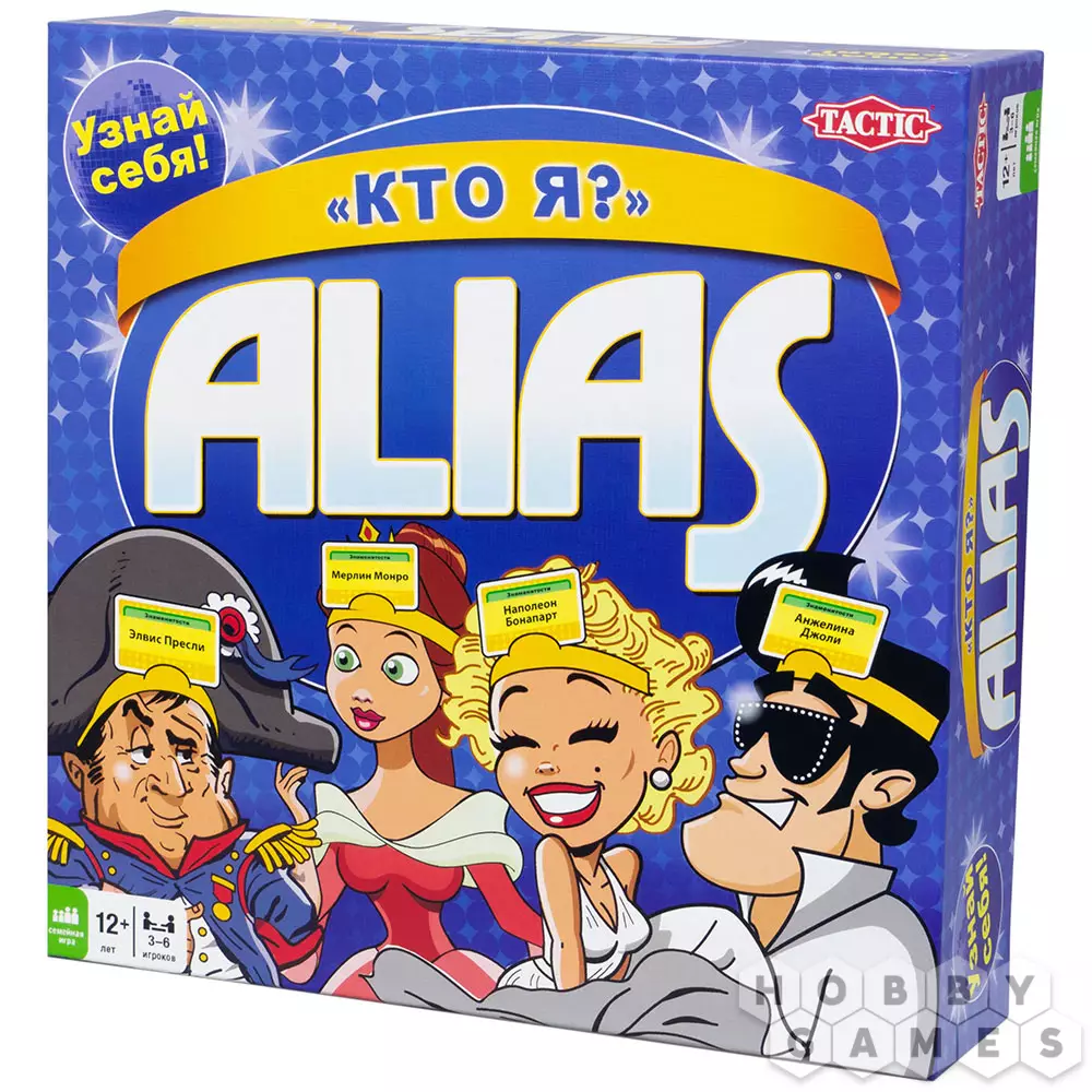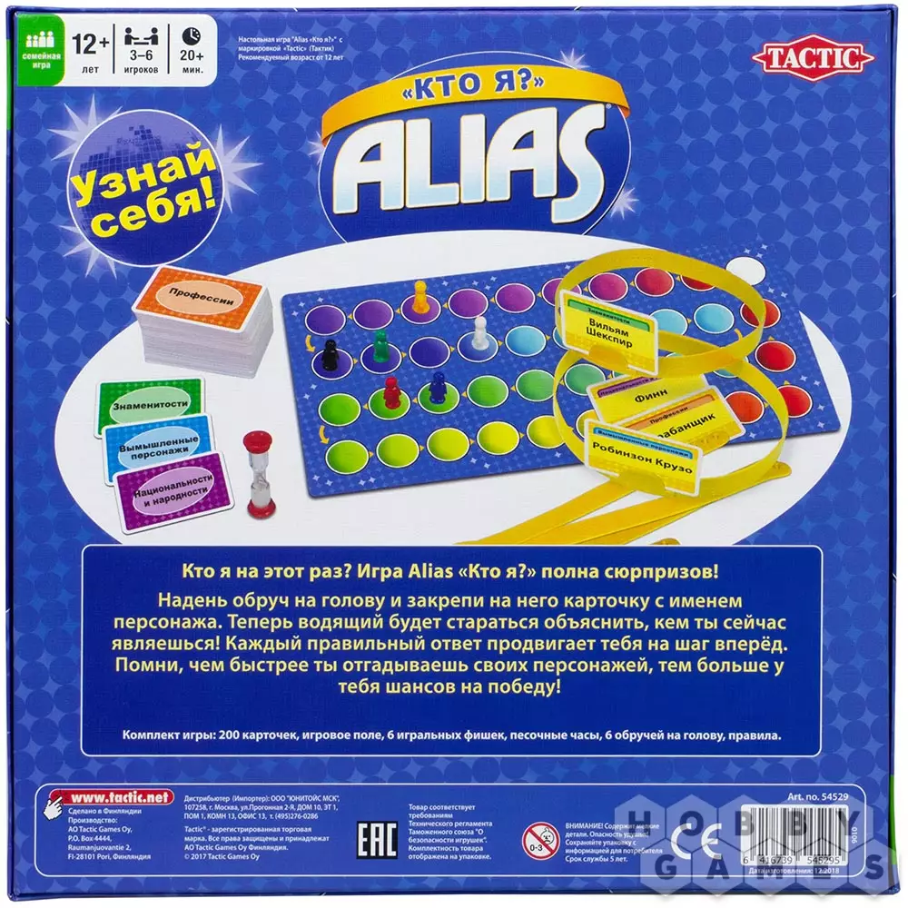 Люди сели в круг, странно себя ведут и задают наводящие вопросы. Что здесь творится, спросите вы? Играют в Alias "Кто Я?"! Каждый игрок надевает на голову специальный обруч, тянет карту и, не глядя на неё, ставит "лицом" к другим игрокам.