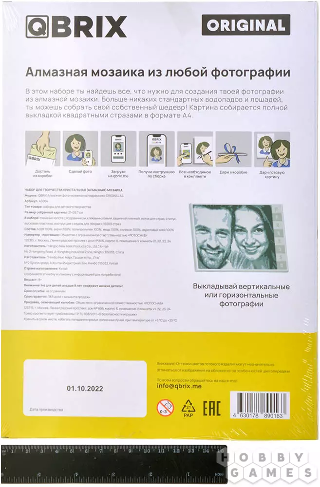 Так как стразы наносятся на клеевую основу, мозаику можно собрать только один раз без возможности замены фото.