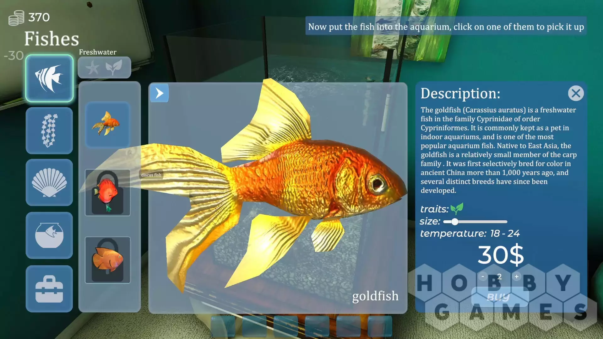 Открыть аквариумный магазин – это настоящий вызов! Клиенты поручат вам сложные задачи, с которыми вам придется справиться. Взамен вас ждет награда. Предназначен для развития бизнеса - покупка новой рыбы, экзотических растений, магазин.