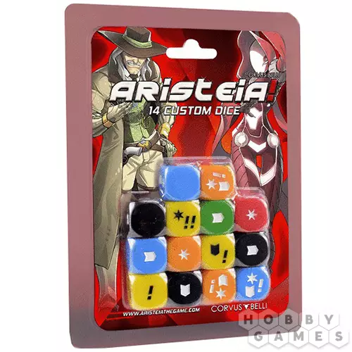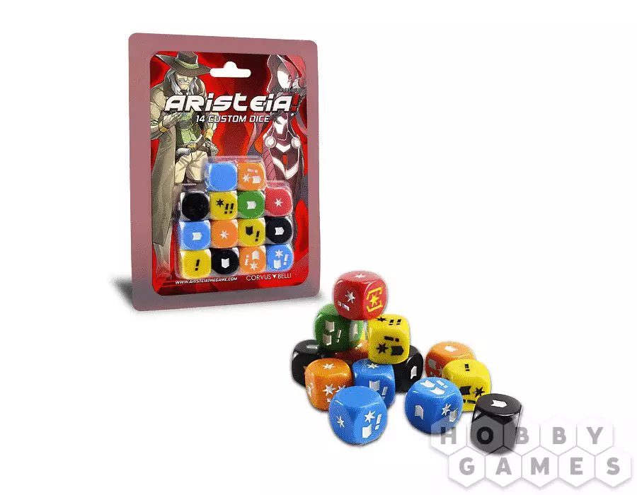 В этом блистере вы найдёте четырнадцать непрозрачных шестигранных кубиков для ваших игр в Aristea!