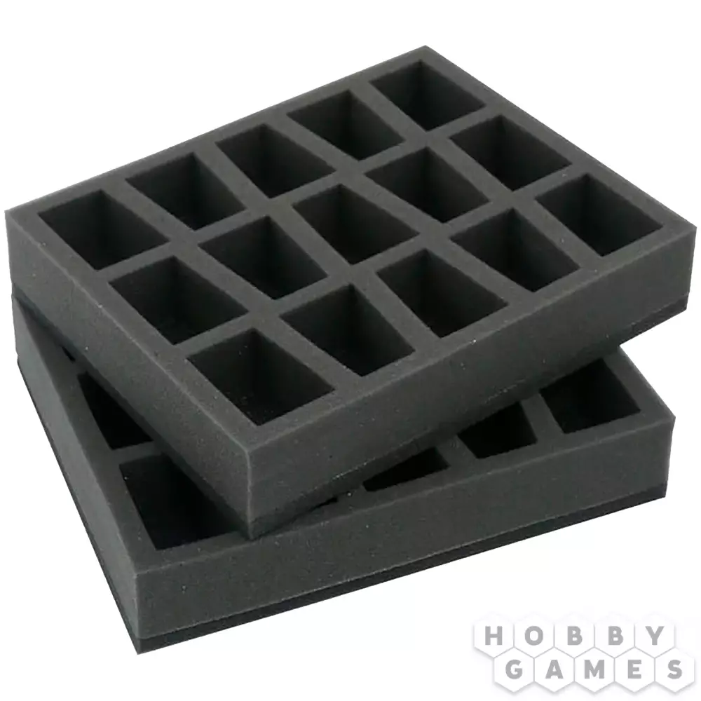 Два поролоновых лотка с 15 трапециевидными ячейками, размер каждой: 54x40x40 мм