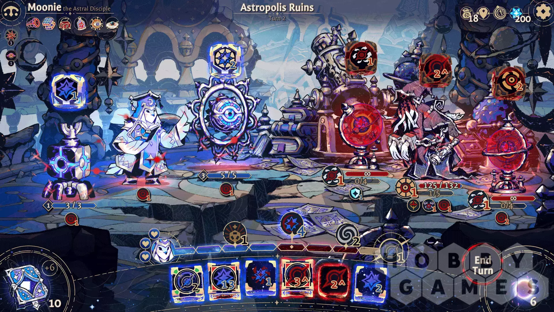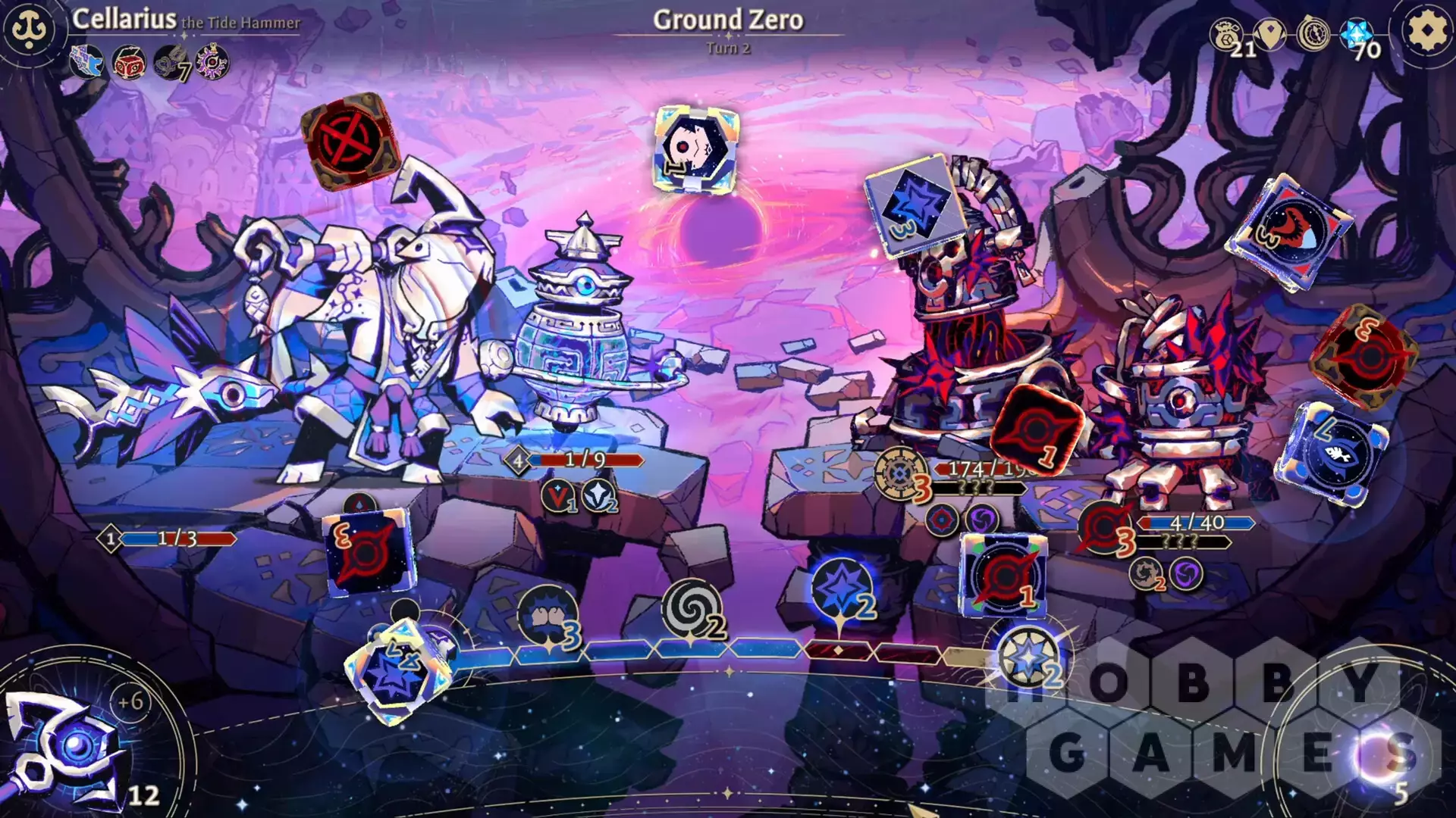 Управляйте врагами и своей судьбой. Враги атакуют с помощью своих кубиков, и у вас есть возможность на них влиять, чтобы изменить ход битвы.