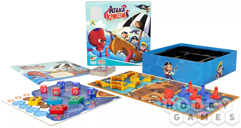 "Атака Кракена" – отличная кооперативная игра для всей семьи с несложными правилами, красочными иллюстрациями и пиратскими приключениями.