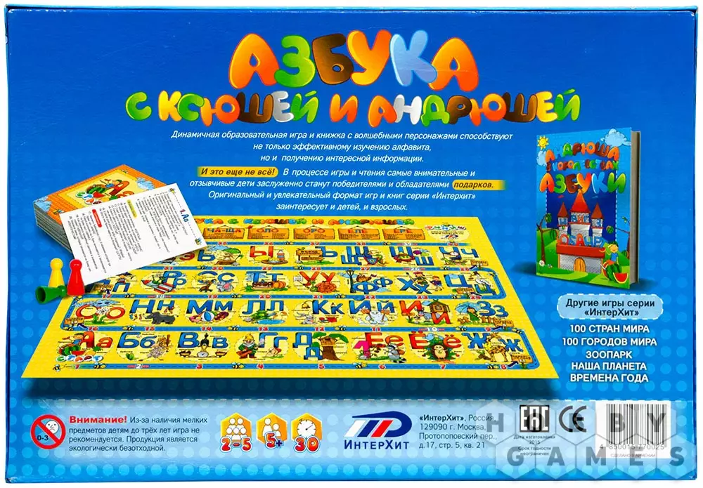 Настольная игра "Азбука с Ксюшей и Андрюшей" в лёгкой игровой форме познакомит ребят с буквами алфавита, расскажет о существительных, глаголах и прилагательных. Научит новым словам и правилам русского языка, а также разовьёт зрительную память, предложив запомнить и рассказать об увиденных картинках. Любимая многими "ходилка" с элементами викторины предлагает два варианта игры.