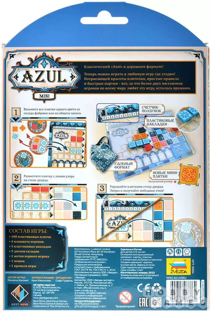 Перед вами уже знакомый многим классический "Азул", но в компактном исполнении. Теперь у вас есть возможность взять любимую игру с собой и разложить её, где вам захочется!