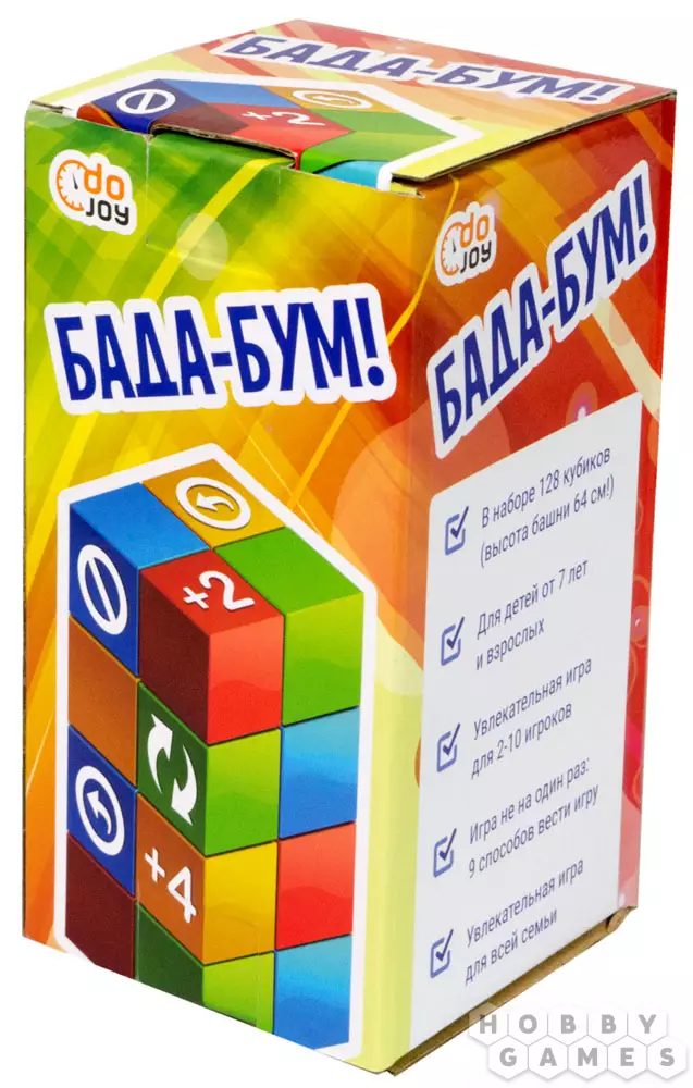 "Бада-Бум!" – интересная, азартная и весёлая настольная игра для 2-8 игроков, которая увлечёт вас и ваших друзей не на шутку. В азарте игры вы забудете обо всем. У вас будет только одна цель – выиграть турнир!