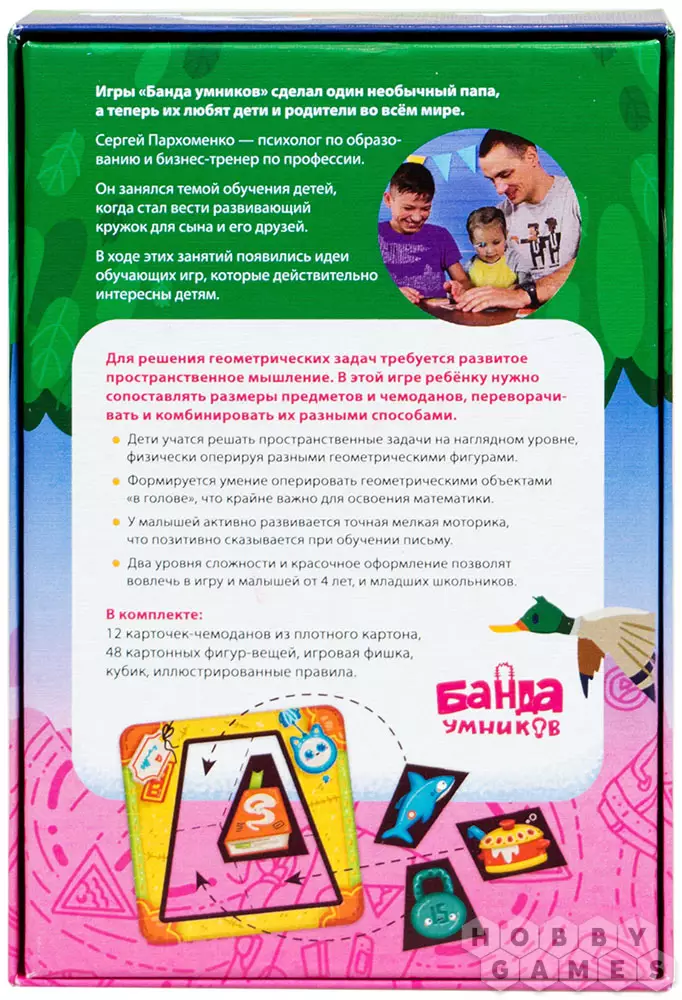 В процессе игры ребята научатся оперировать геометрическими объектами, сначала на физическом уровне, а со временем "в голове"