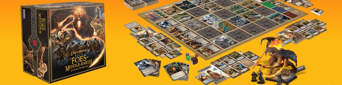 Foes of Middle-earth — кооперативная приключенческая игра, которая позволяет пережить часть ключевых сцен из фильма «Властелин колец: Братство кольца». Игрокам предлагается пройти путь Братства кольца по Средиземью, но каждую партию разный за счёт игрового поля, которое формируется случайно из квадратов регионов.