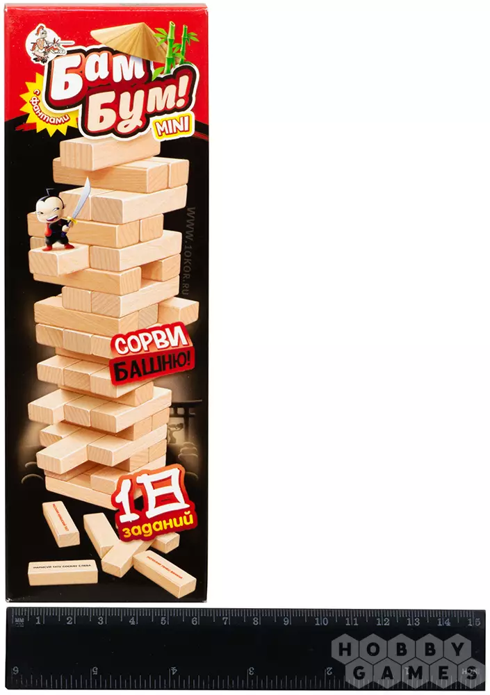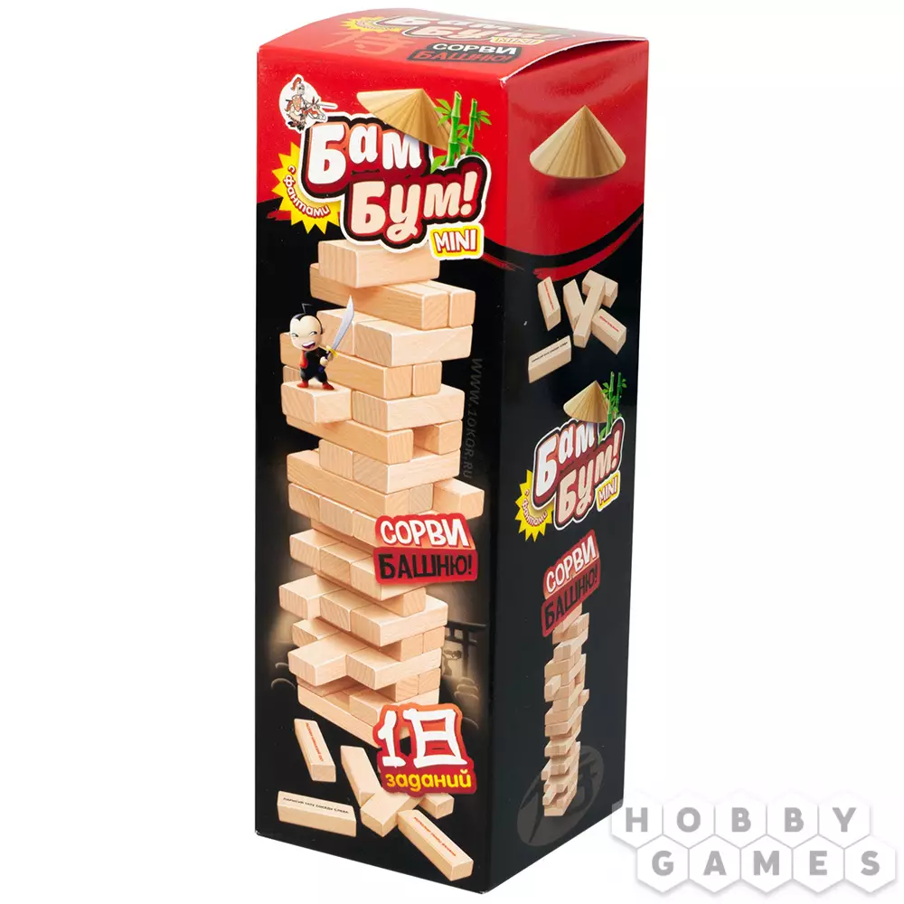 В данной версии на деревянных брусках вы найдёте особые задания, которые нужно будет незамедлительно выполнить, если из башни достаётся такой брусок. Например, вам потребуется продемонстрировать свой поэтический дар, сочинив любое стихотворение, или же изобразить пчёлку, добывающую нектар. Словом, скучно не будет! К тому же, всегда можно подключить фантазию и придумать новые увлекательные задания, написав их прямо на брусках. Или же можно пронумеровать бруски, а фанты выписать в отдельный блокнот. Творите, придумывайте, развлекайтесь и весело проводите время вместе с настольной игрой "Бам-Бум"!