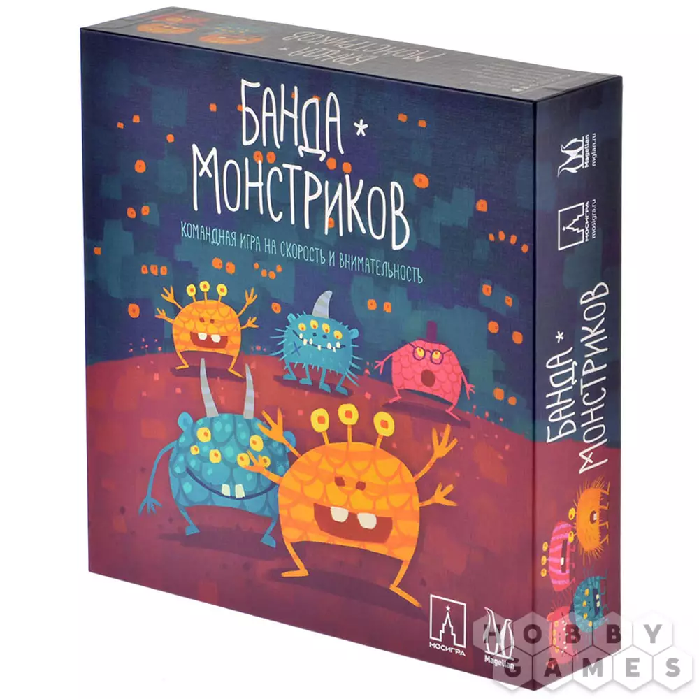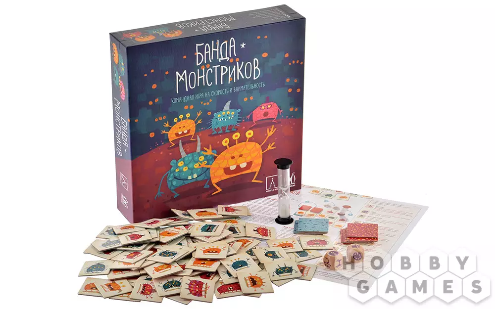 Смешные монстрики-близнецы любят собираться большой компанией и веселиться. Но вот незадача – братья-монстрики потеряли друг дружку в большой толпе. В настольной игре "Банда монстриков" игрокам предстоит помочь незадачливым близнецам отыскать друг друга.