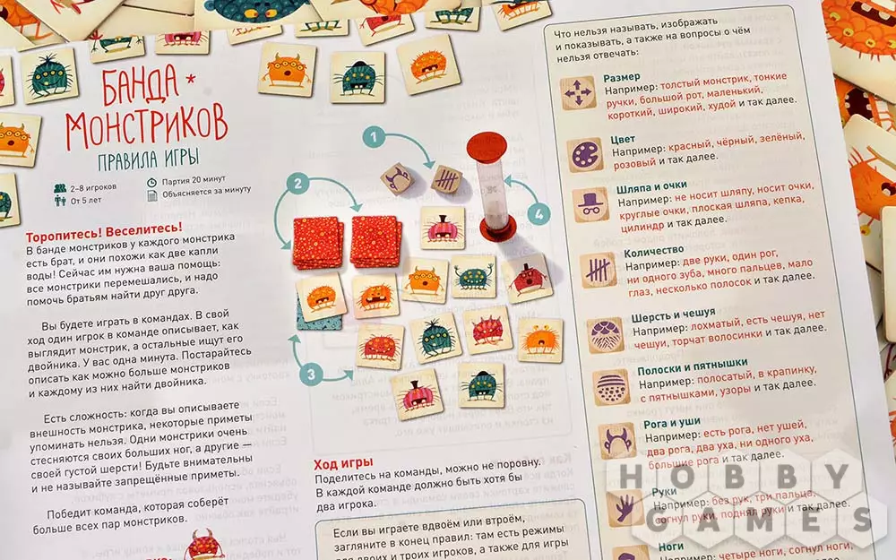 Участники игры делятся на команды. В свой один игрок рассказывает своей команде, как выглядит тот или иной монстрик, а остальные пытаются отыскать двойника среди игровых карточек. Всё это нужно успеть сделать за одну минуту, которая засекается песочными часами. Казалось бы, задача несложная, но, к сожалению, некоторые монстрики не любят, когда упоминают определённые их приметы. Кому-то не нравится, что разговор заходит про их густую или цветную шерсть, а кто-то стесняется своих клыков или больших ушей. И всем нужно угодить, иначе монстрик попросту убежит.