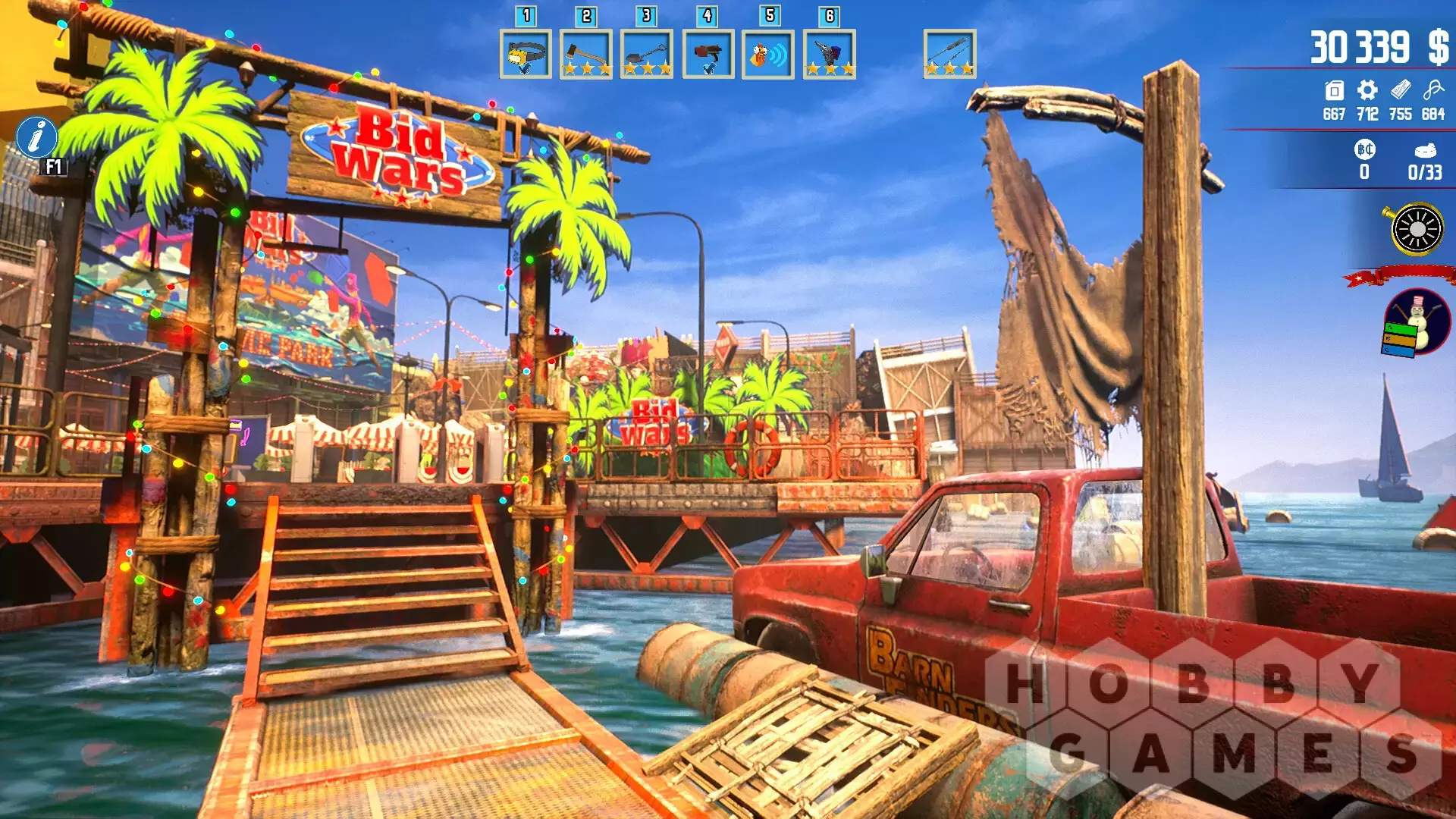 "Последнее DLC Barn Fiders - Bid Wars (Войны Ставок) переносит игрока на экзотический остров, полный новинок. Дополнение к игре предлагает совершенно новые решения для существующего игрового процесса в принципиально новой, огромной локации, предлагающей бесконечный игровой процесс. Помимо новых возможностей, Bid Wars предлагает все то же старое чувство юмора