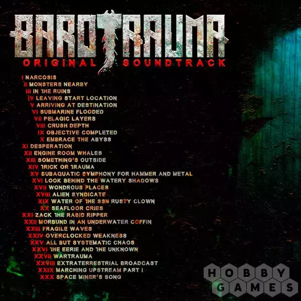 - Официальный саундтрек игры Barotrauma. Новые композиции добавляются по мере создания. Пусть вас окутает мрачный гул и шум океана Европы. Что же вы услышите: загадочную электронную музыку или крики глубоководных чудовищ, скрывающихся в океане?