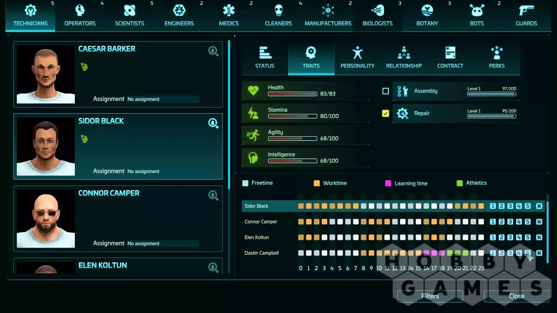 Соберите свою команду для выполнения различных задач. Каждый член экипажа обладает набором уникальных характеристик и особенностей.