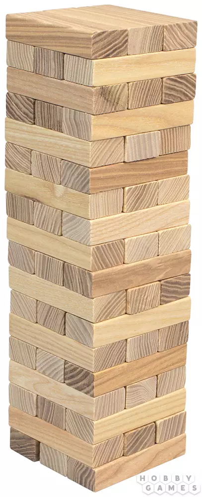 В начале игры все бруски собираются в этажи по три блока на каждом. По ходу игры участникам нужно переставлять вынимать из башни бруски так, чтобы башня не рухнула. Для игры понадобится логическое мышление, ловкость рук и сноровка. Попробуйте определить, какой блок можно взять, чтобы не подвергнуть башню риску. Если конструкция рухнет на вашем ходу, то победа достанется игроку, который ходил перед вами.